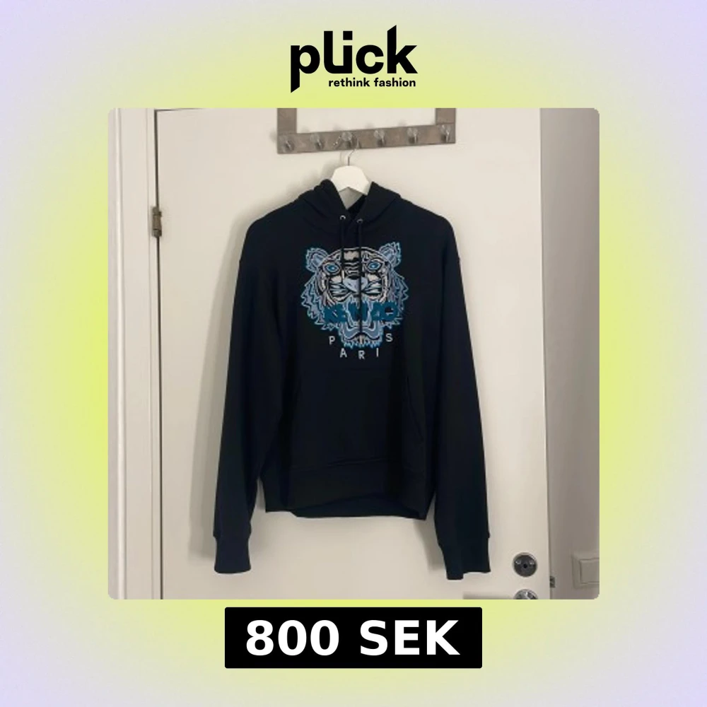 Svart hoodie från Kenzo i 100% bomull med ikonisk broderad tiger i blått och vitt på bröstet. Klassisk huva med snörning och känguruficka framtill. Perfekt för dig som vill sticka ut med en streetstyle-look.