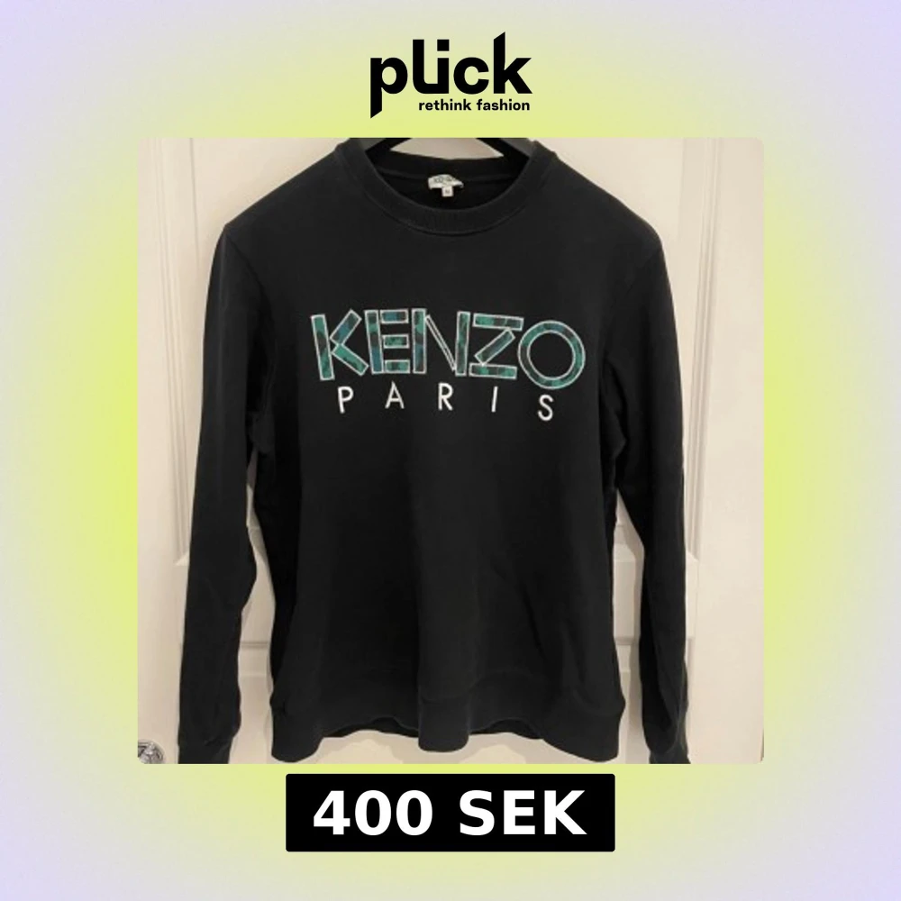 Snygg svart Kenzo tröja med det ikoniska logotyptrycket i turkos och vitt på framsidan.