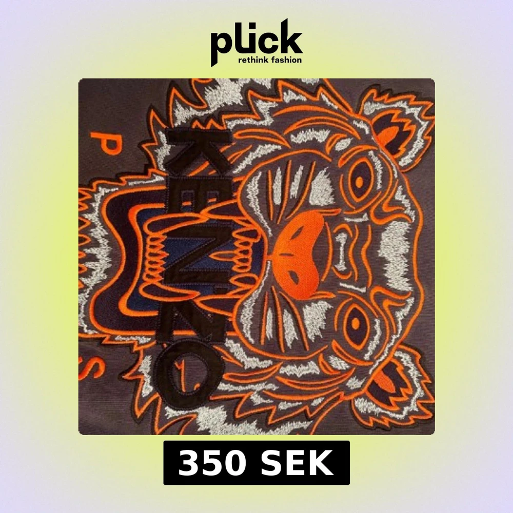 Säljer en mörkblå sweatshirt från Kenzo med stort broderat tigerhuvud i orange, svart och vitt på bröstet. Tröjan har rund hals och långa ärmar. Perfekt statement-plagg för dig som gillar färg och detaljer.