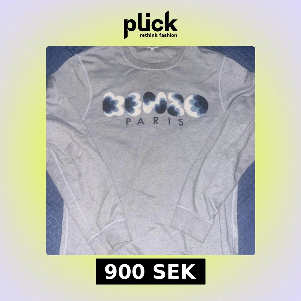 Grå sweatshirt från Kenzo Paris i storlek M. Tröjan har ett coolt tryck med Kenzo-loggan i blått, vitt och svart på bröstet. Rund hals och långa ärmar med ribbade muddar. Tillverkad i mjuk bomull, perfekt för chill dagar.
