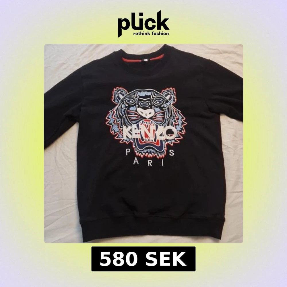 Säljer en svart sweatshirt från Kenzo i riktigt bra skick köpt på zalando, med det ikoniska tigerbroderiet och texten 'Paris' framtill. Perfekt för dig som vill sticka ut med en snygg och trendig look. använd ett fåtal gånger.
