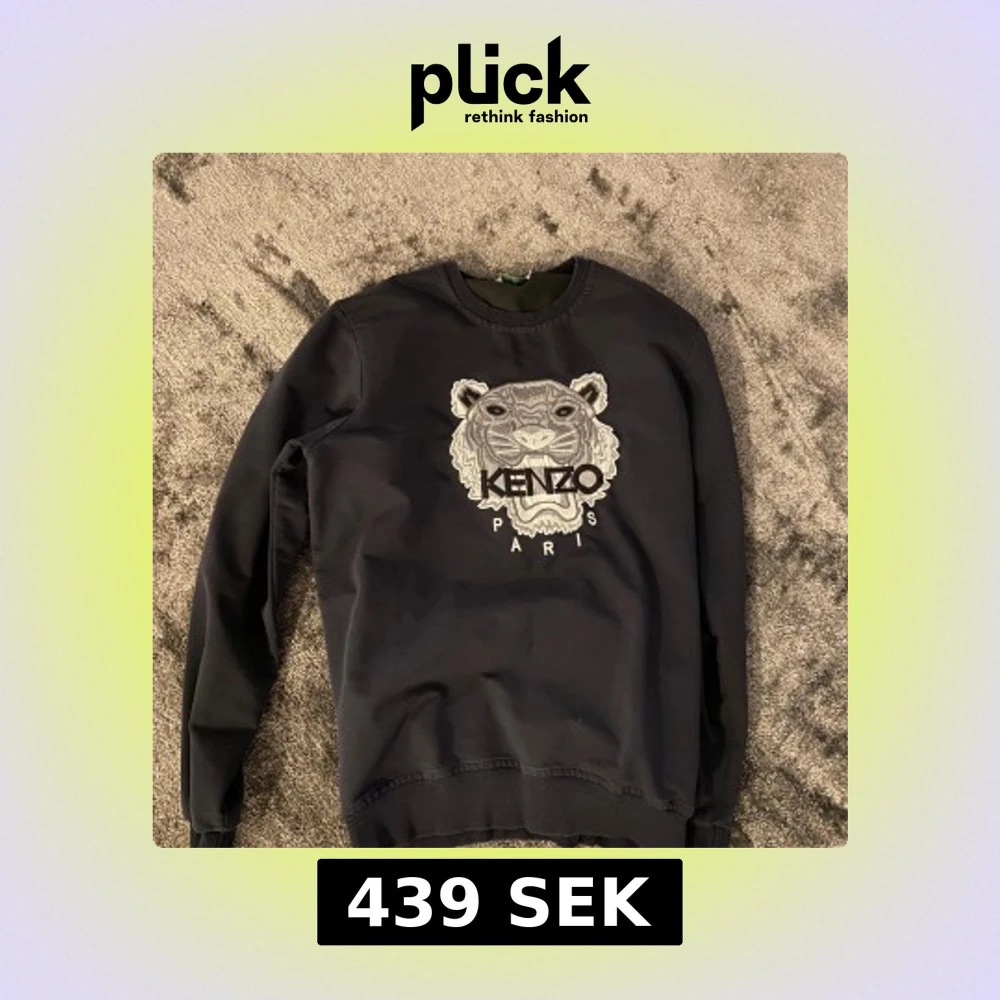 Svart sweatshirt från Kenzo med ikoniskt broderat tigerhuvud och logga på bröstet. Tröjan har rund halsringning, ribbade muddar och är långärmad. Perfekt för dig som vill sticka ut med en stilren streetwear-look.
