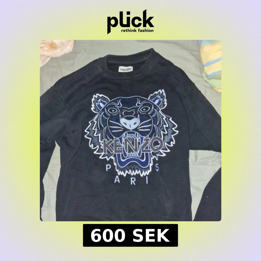 Svart sweatshirt från Kenzo med stort broderat tigerhuvud och texten 'KENZO PARIS' på bröstet. Tröjan har rund halsringning och långa ärmar. Perfekt statement-plagg för dig som gillar streetwear.