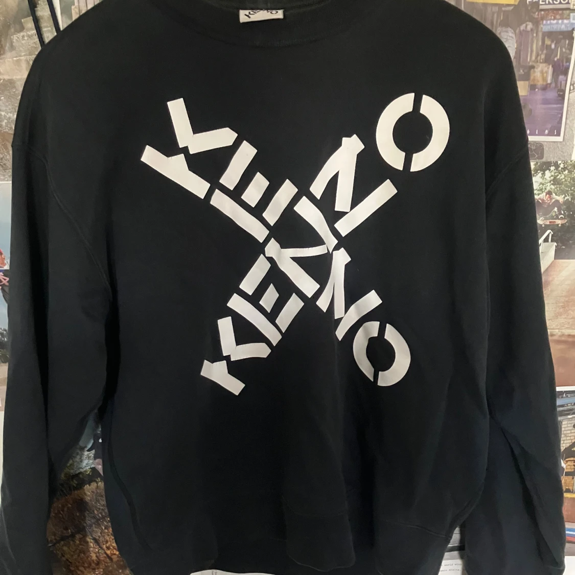 Svart sweatshirt från Kenzo med stor vit logotyp tryckt