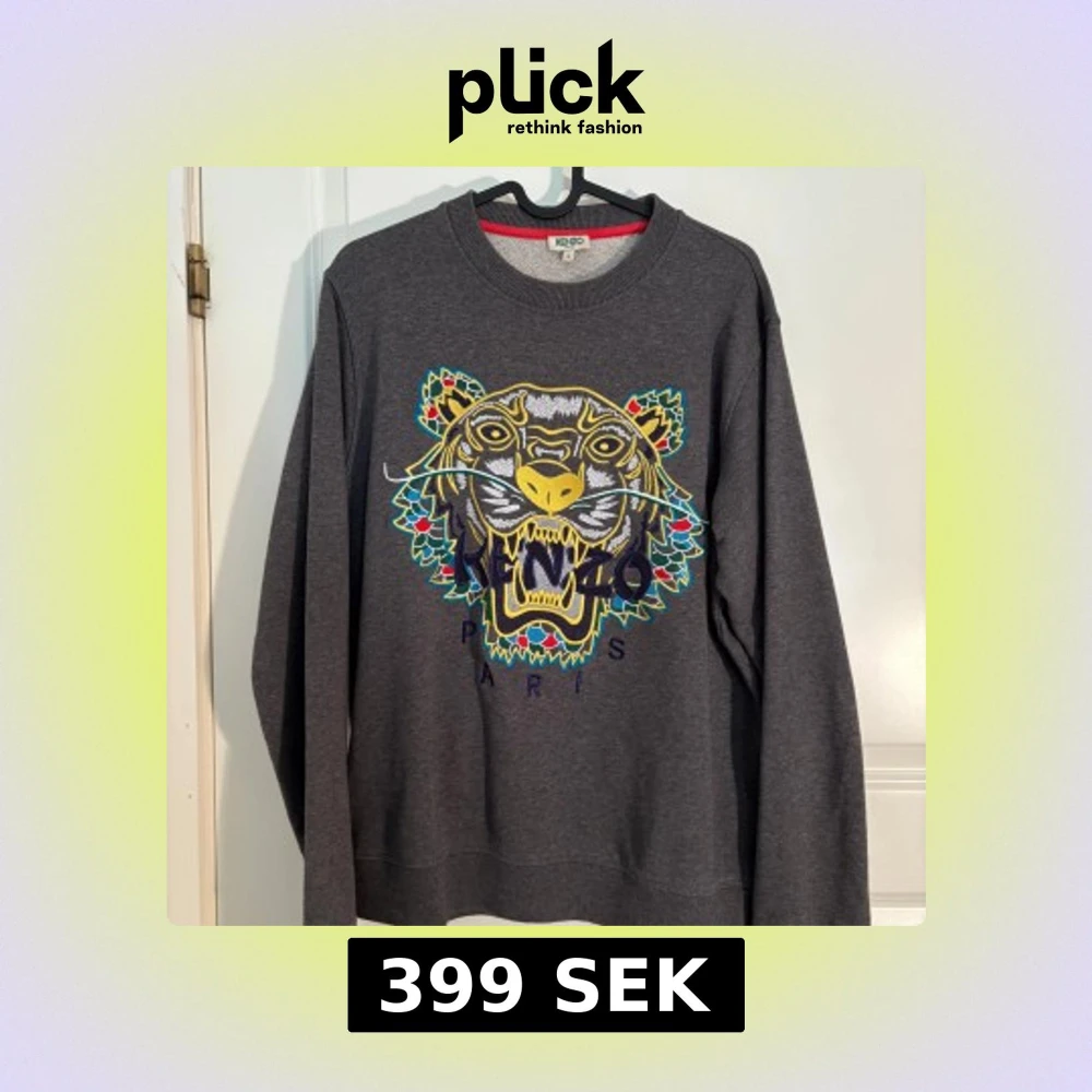 Grå sweatshirt från Kenzo med ikoniskt broderat tigerhuvud i flera färger på bröstet. Rund halsringning och ribbade muddar. Perfekt statement-plagg för dig som gillar färg och mönster.