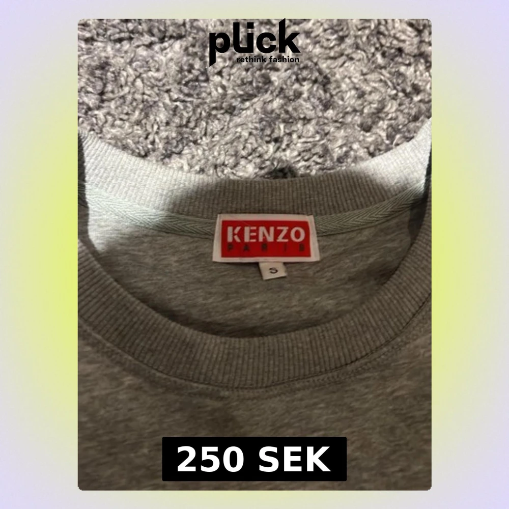 Säljer en grå sweatshirt från Kenzo med ikoniskt tigertryck och broderad logga på bröstet. Klassisk rund halsringning och ribbade muddar. Perfekt för dig som vill ha en statementtröja med streetvibe.