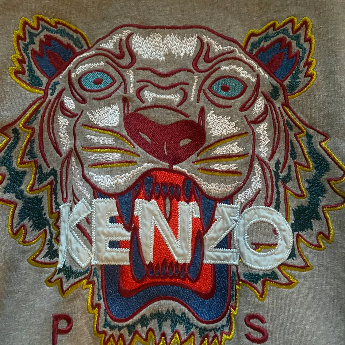 Grå sweatshirt med en broderad tiger på framsidan. Tröjan har en rund halsringning och långa ärmar. Storlek S och är i bra skick. Nypris ligger runt 2300.