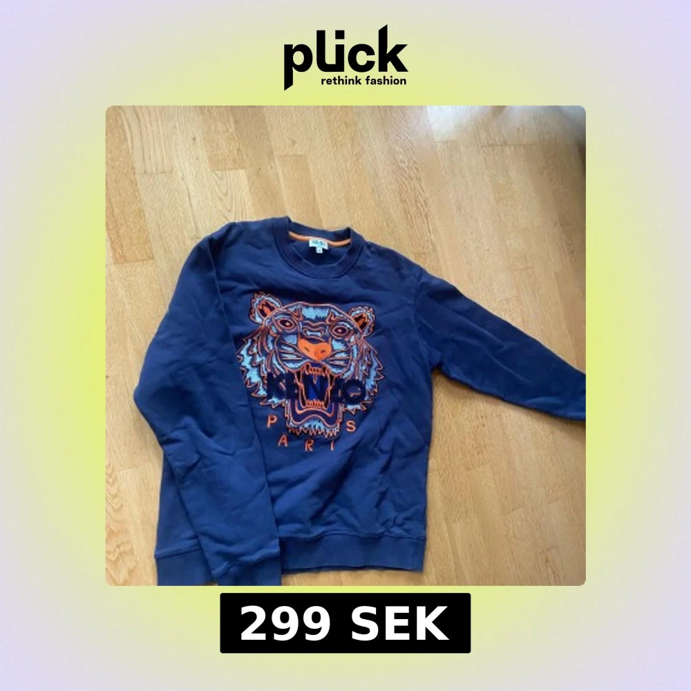 Halloj, Säljer en mörkblå sweatshirt från Kenzo med ett stort, färgglatt tigerbroderi på framsidan. Storlek är M passar mig som är 181💯Kom gärna med Funderingar eller frågor🙌Okej skick👏