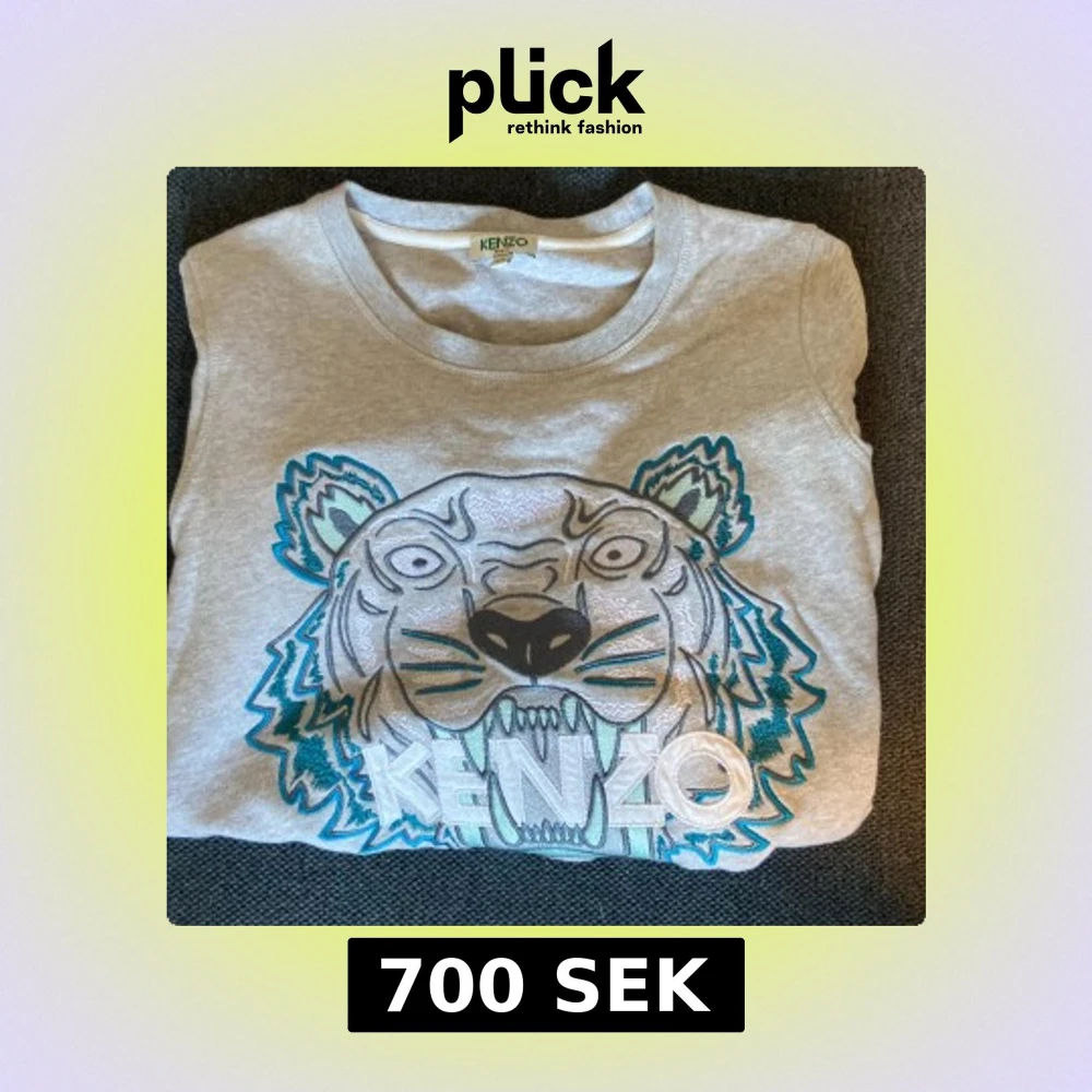 Säljer en grå sweatshirt från Kenzo i storlek XS med det ikoniska tigerbroderiet i silver, blått och svart på framsidan. Tröjan har rund hals, långa ärmar och är gjord i mjuk bomull. Perfekt för dig som gillar statement-plagg och coola designer.