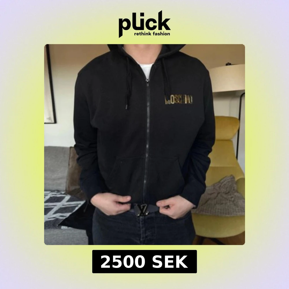 Säljer min killes äkta kofta från Moschino med dragkedja och guldfärgad logga på bröstet. Köptes för 5000 och nästan helt oanvänd
