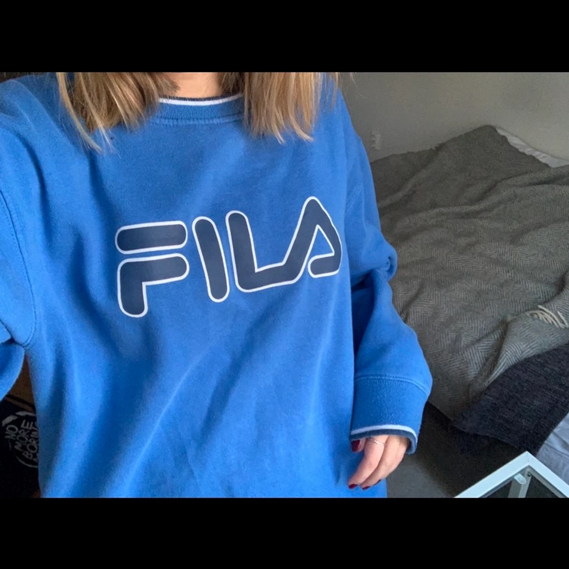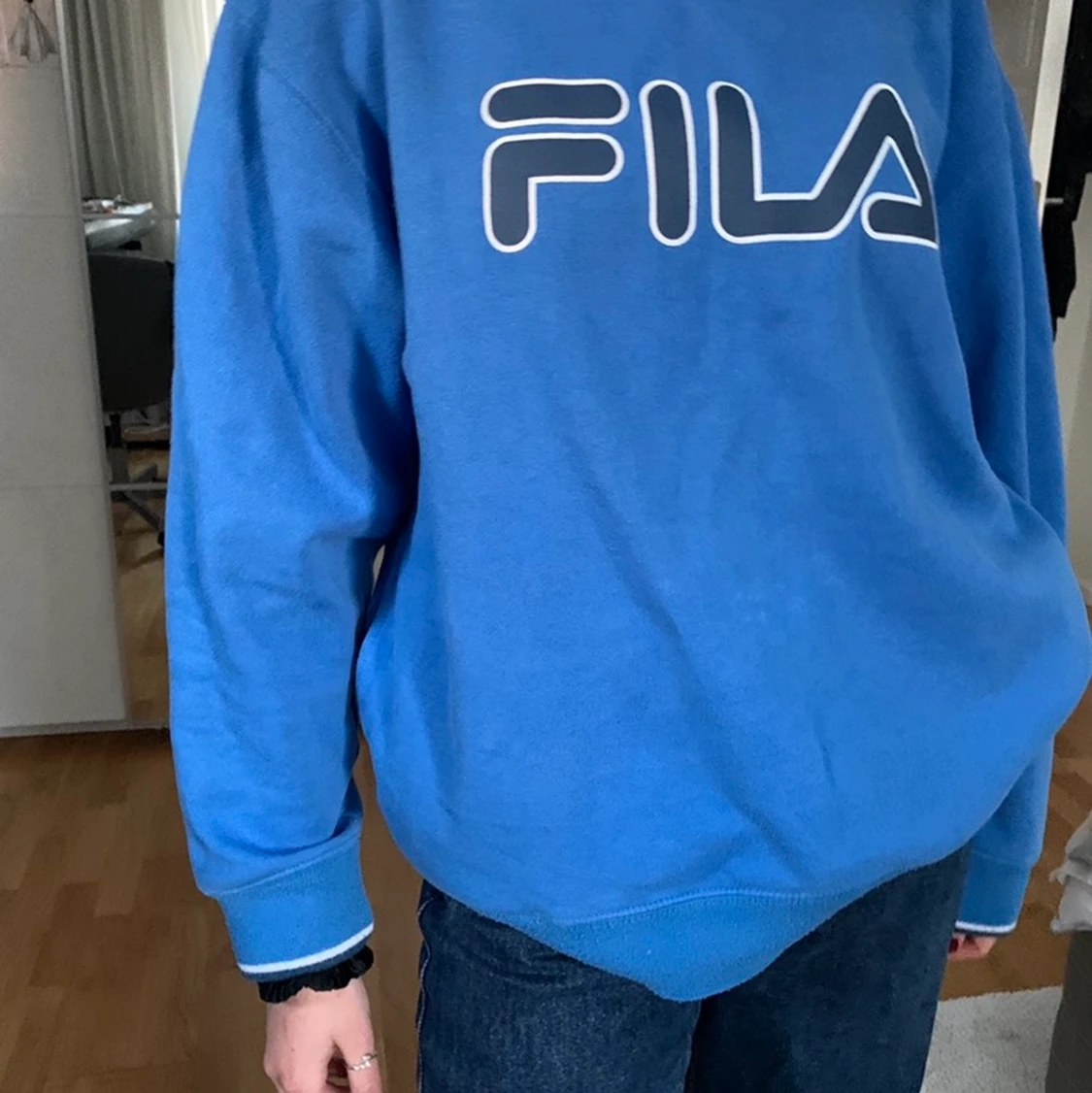 Säljer min fila collegetröja! Så snygg men knappt använd, så därför väljer jag att sälja. Har köpt på humana och det är storlek M, oversized på mig som är XS/S. Säljer för 150kr+frakt, men kan också mötas upp💕