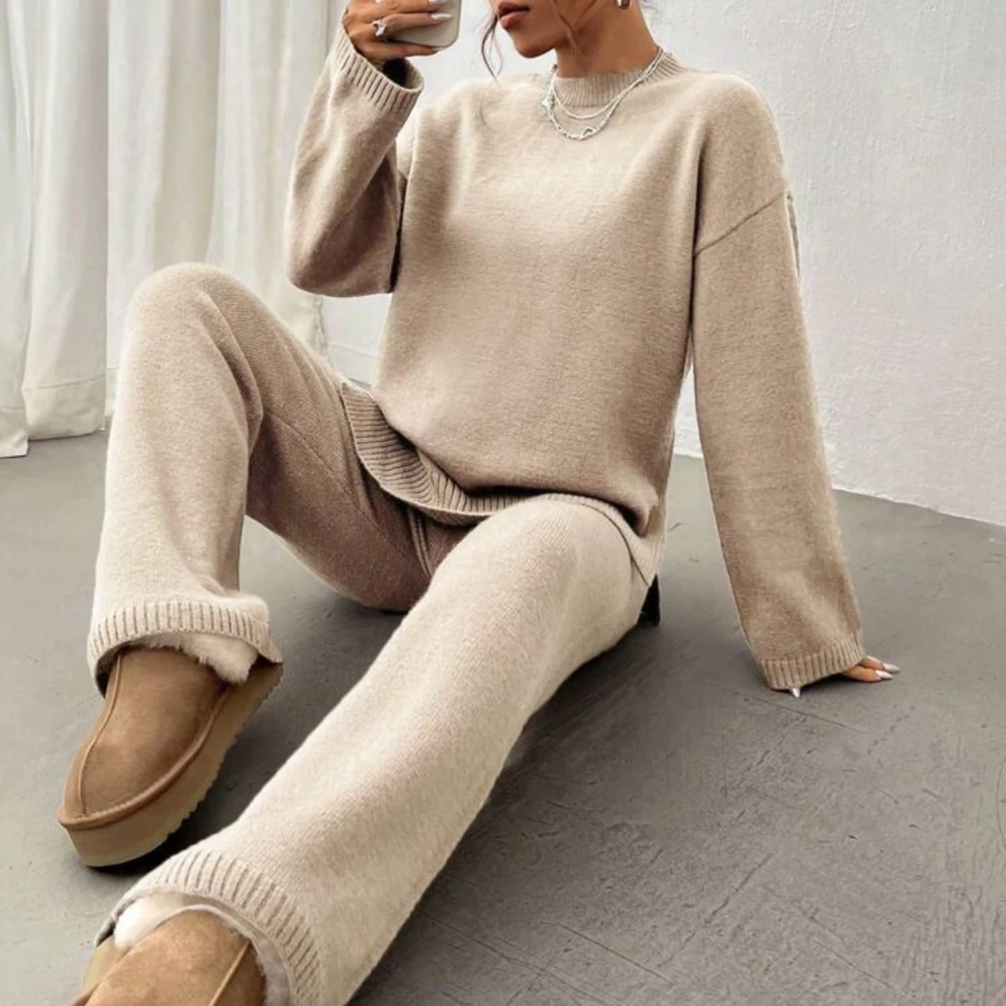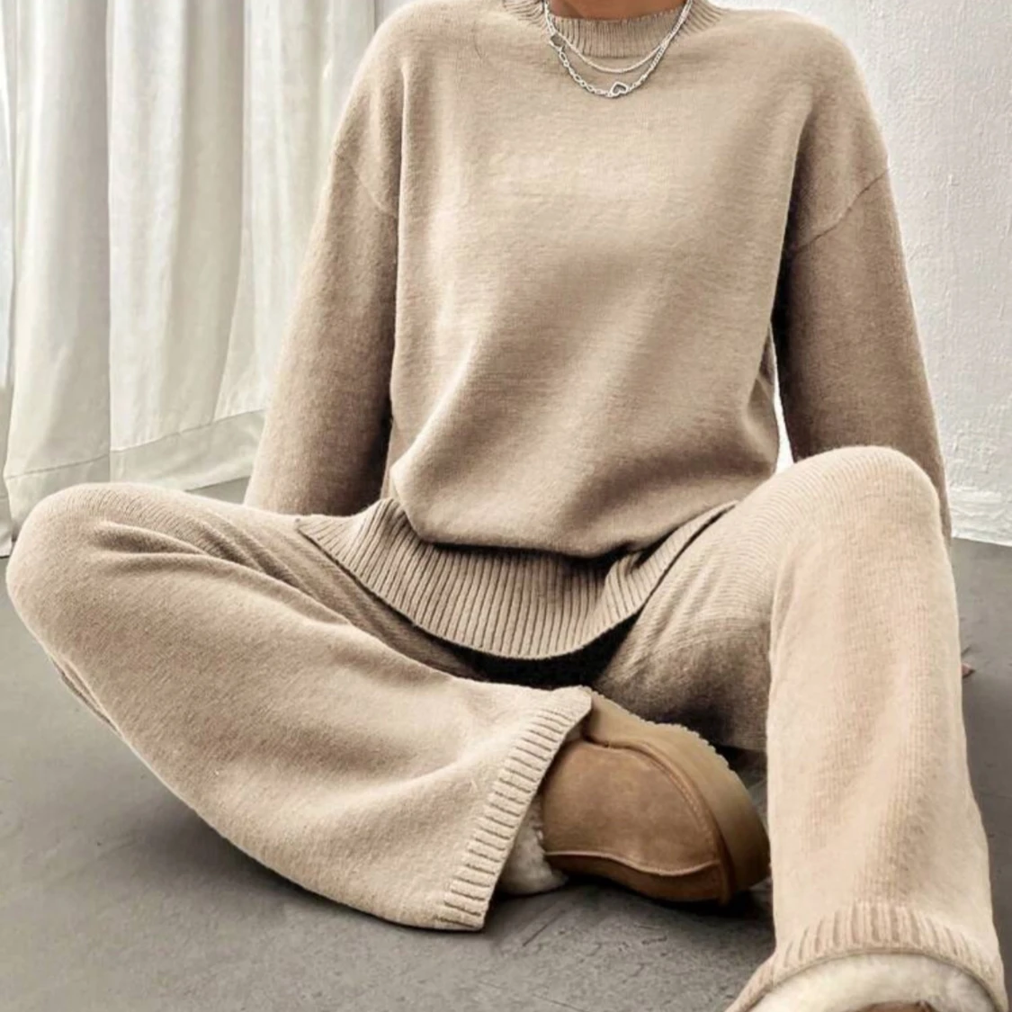 Säljer detta setet både byxorna och tröjan. Jätteskönt material och mysig passform. Säljer då jag köpte fel färg.