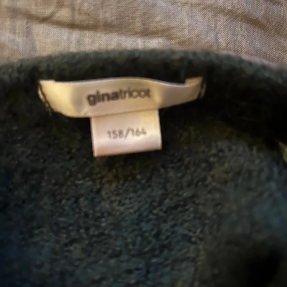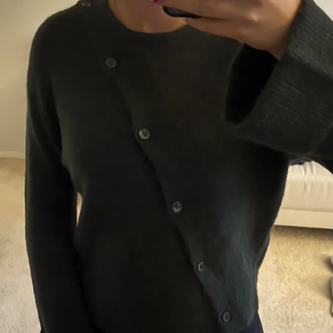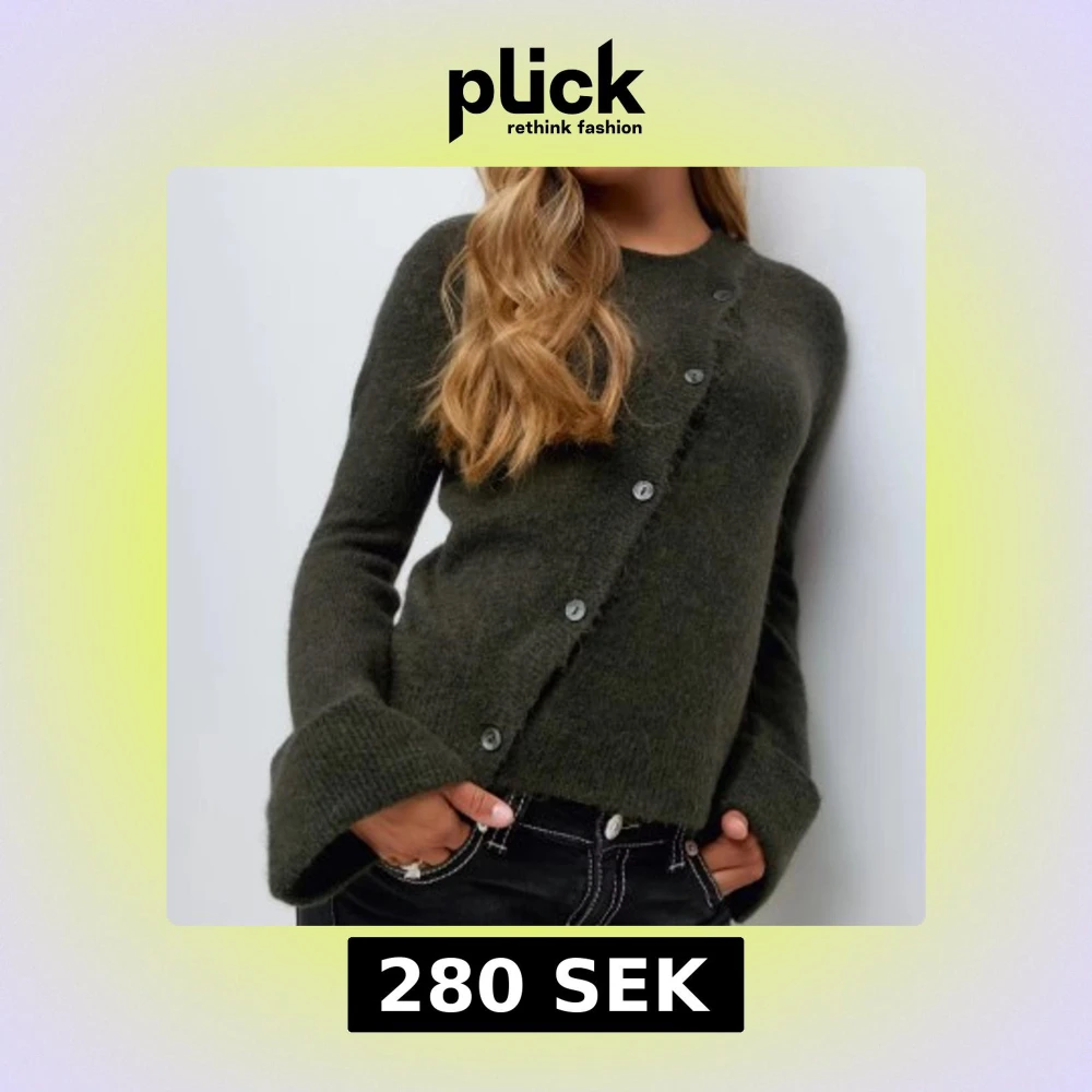 Snygg mörkgrön kofta från Gina Tricot med asymmetrisk knäppning framtill. Nytt skick, aldrig använd