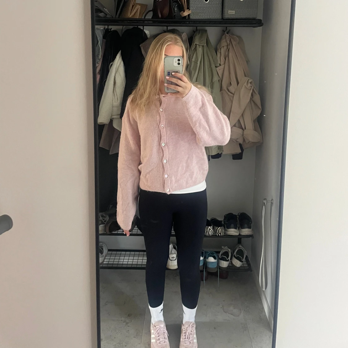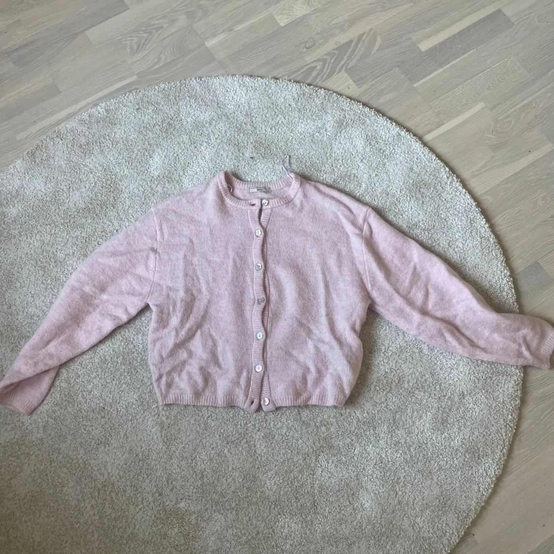 Supermysig ljusrosa kofta från Gina Tricot med knappar framtill. I storlek xs, endast använd ett fåtal gånger så i mycket bra skick