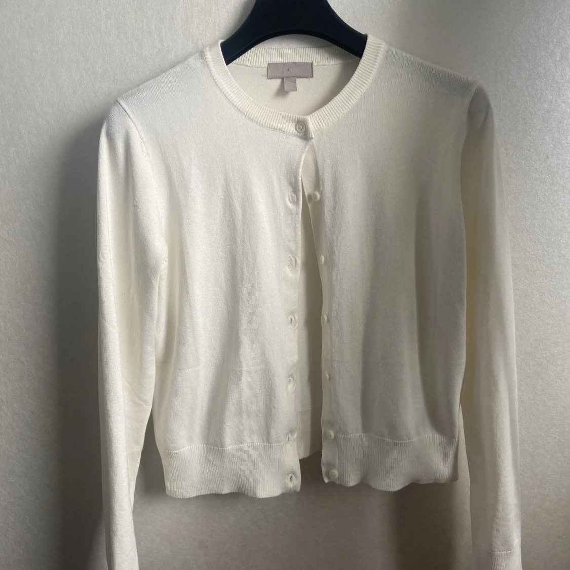 En vit kofta som passar till våren. Den är fin över en sommartopp💕 Inte jätte använd och inte sliten. Stolek M men rätt så liten i stoleken då jah vanligtvis har S.