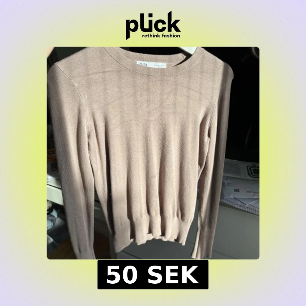 Säljer en stilren beige tröja från Zara med långa ärmar och dekorativa knappar vid ärmsluten. Perfekt för en elegant och avslappnad look. Tröjan har en rund halsringning och är tillverkad i ett mjukt material. Tröjan har en fläck på magen som jag tror går bort i tvätten men har inte testat. Skriv vid frågor! 💞