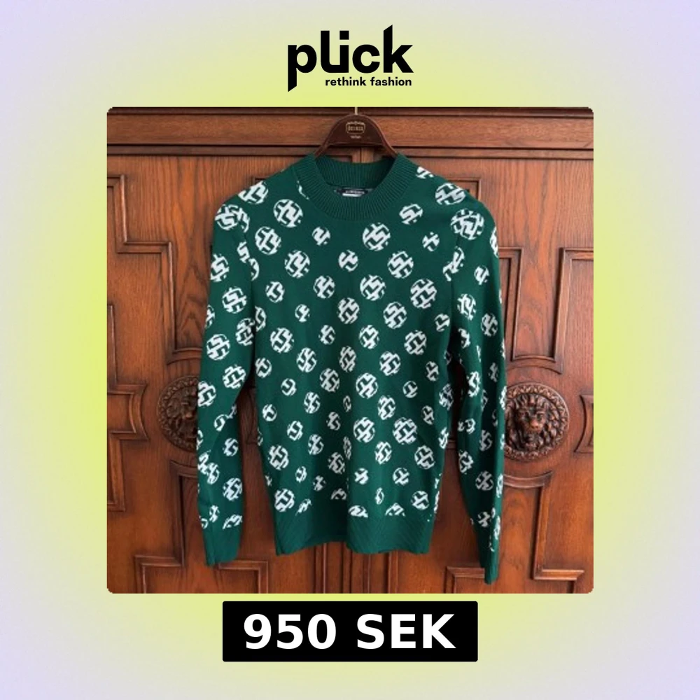 Grön stickad tröja från J.Lindeberg i storlek S. Tröjan har ett vitt grafiskt mönster över hela plagget och ribbade muddar vid hals, ärmslut och nederkant. Perfekt för dig som gillar en unik och trendig look med snygg passform.