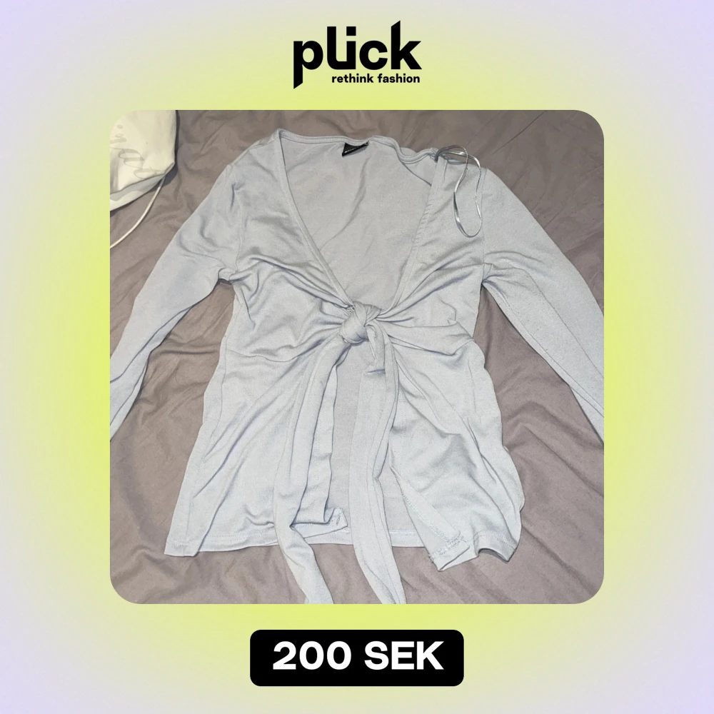 Säljer en superfin ljusblå omlottopp från Gina Tricot i storlek XXS. Toppen har långa ärmar och en snygg knytning framtill som ger en elegant look. Perfekt för både vardag och fest! 💙säljer för 200