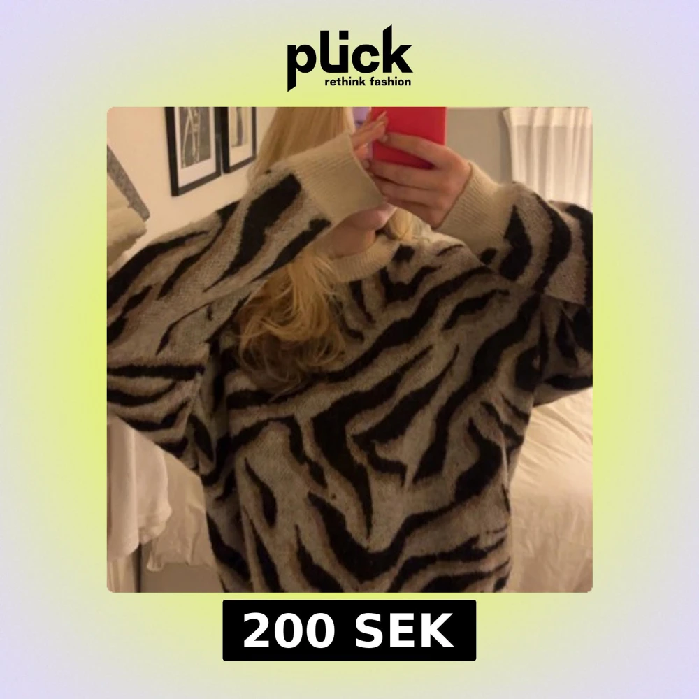 Säljer en oversized stickad tröja från Part Two med beige och svarta zebraränder. Tröjan har rund hals, ribbade muddar och lång ärm. Perfekt för dig som gillar djurmönster och vill ha en mysig, cool look. Materialet är mjukt och fluffigt, passar till jeans eller skinnbyxor.