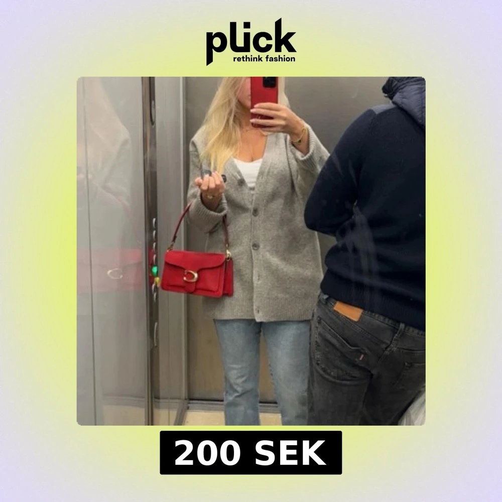 Säljer en mysig grå kofta med knappar framtill. Koftan har en v-ringad design och långa ärmar med ribbade muddar. Perfekt för kyligare dagar.