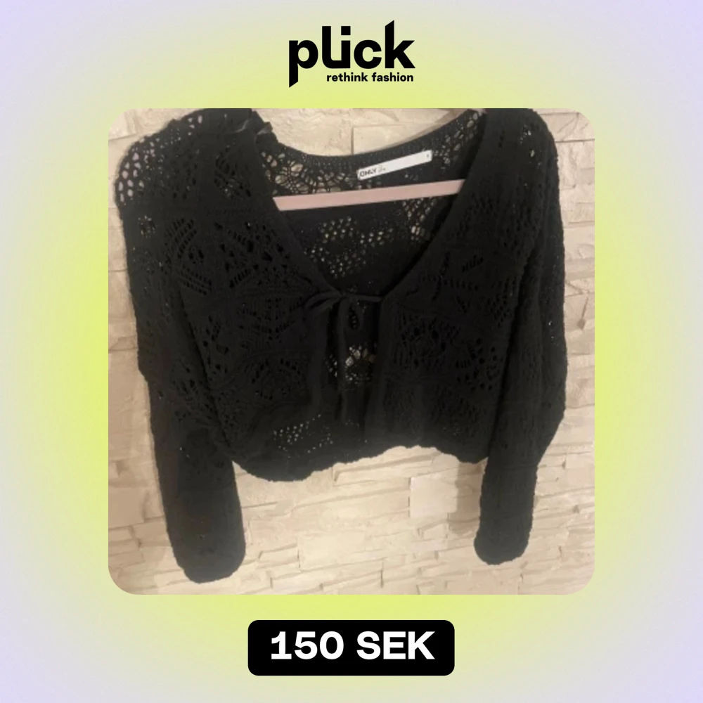 Svart kort kofta med hål i som mönster. Har 2 st så säljer denna extra billigt men kan tänka mig sälja ännu billigare så pris kan diskuteras. (Köpte den för några 100) Den är även knappt använd! 🫶🫶