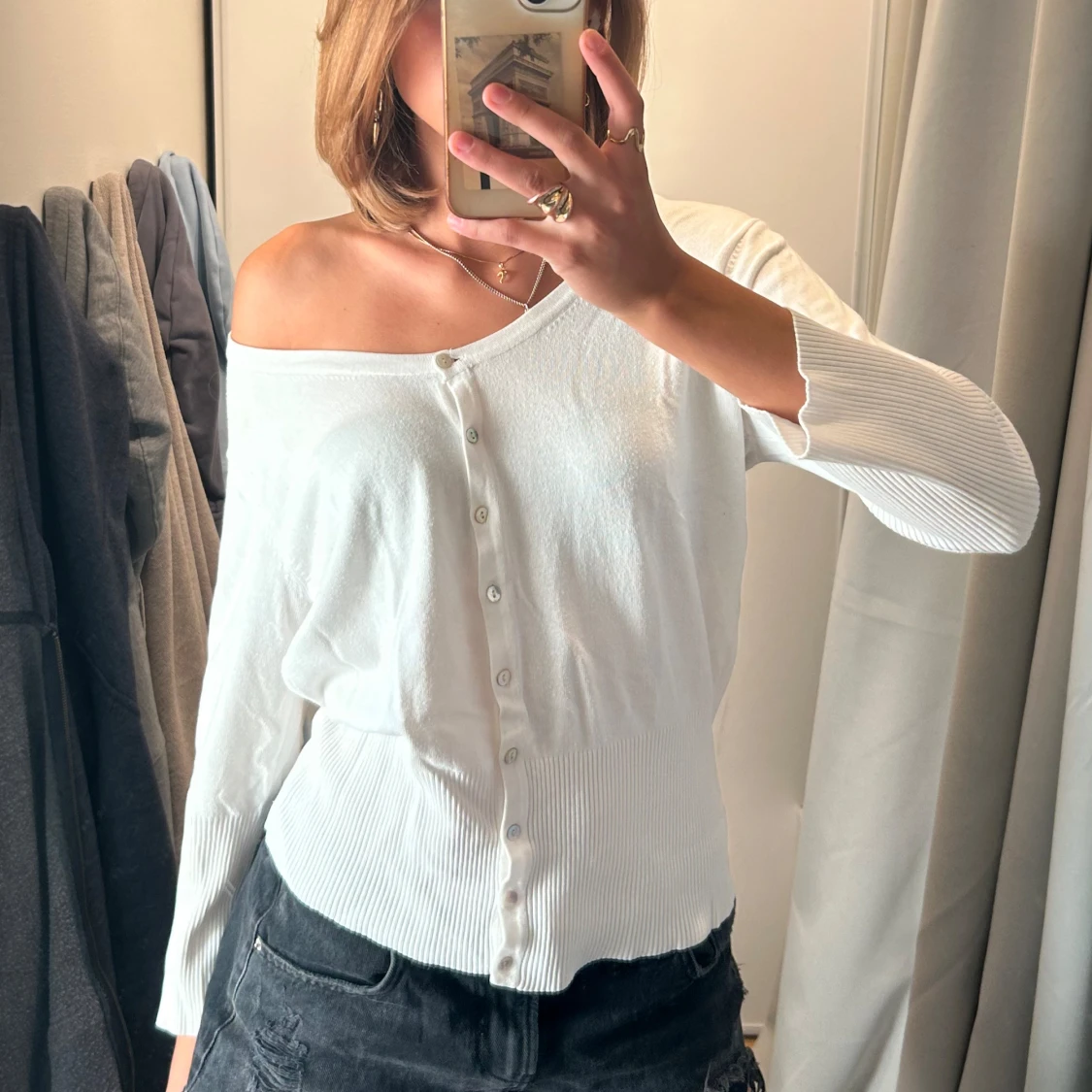 Söt kofta! Ribbad ner till & även längst ner på armarna 💗kortare 3/4 ärmar! Används inte längre! M men passar även S