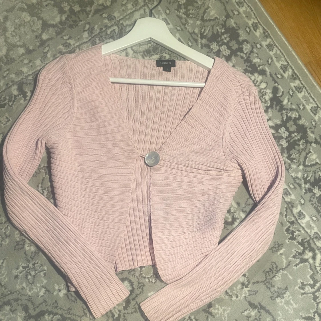 söt, rosa kofta med vit knapp⭐️ kan fram tills 14/8 posta eller mötas i umeå‼️