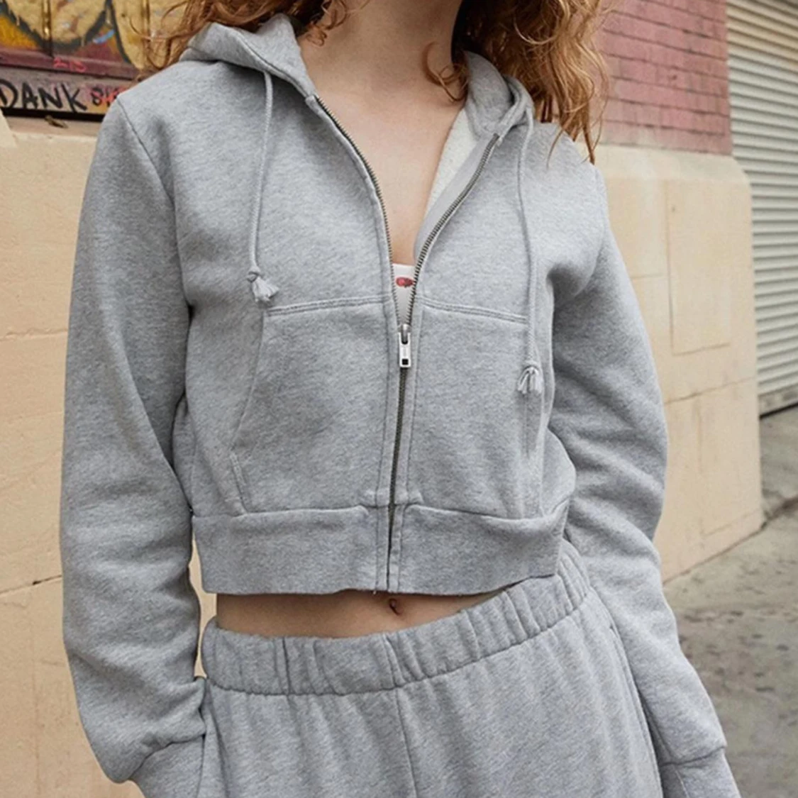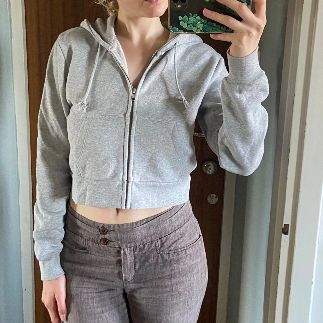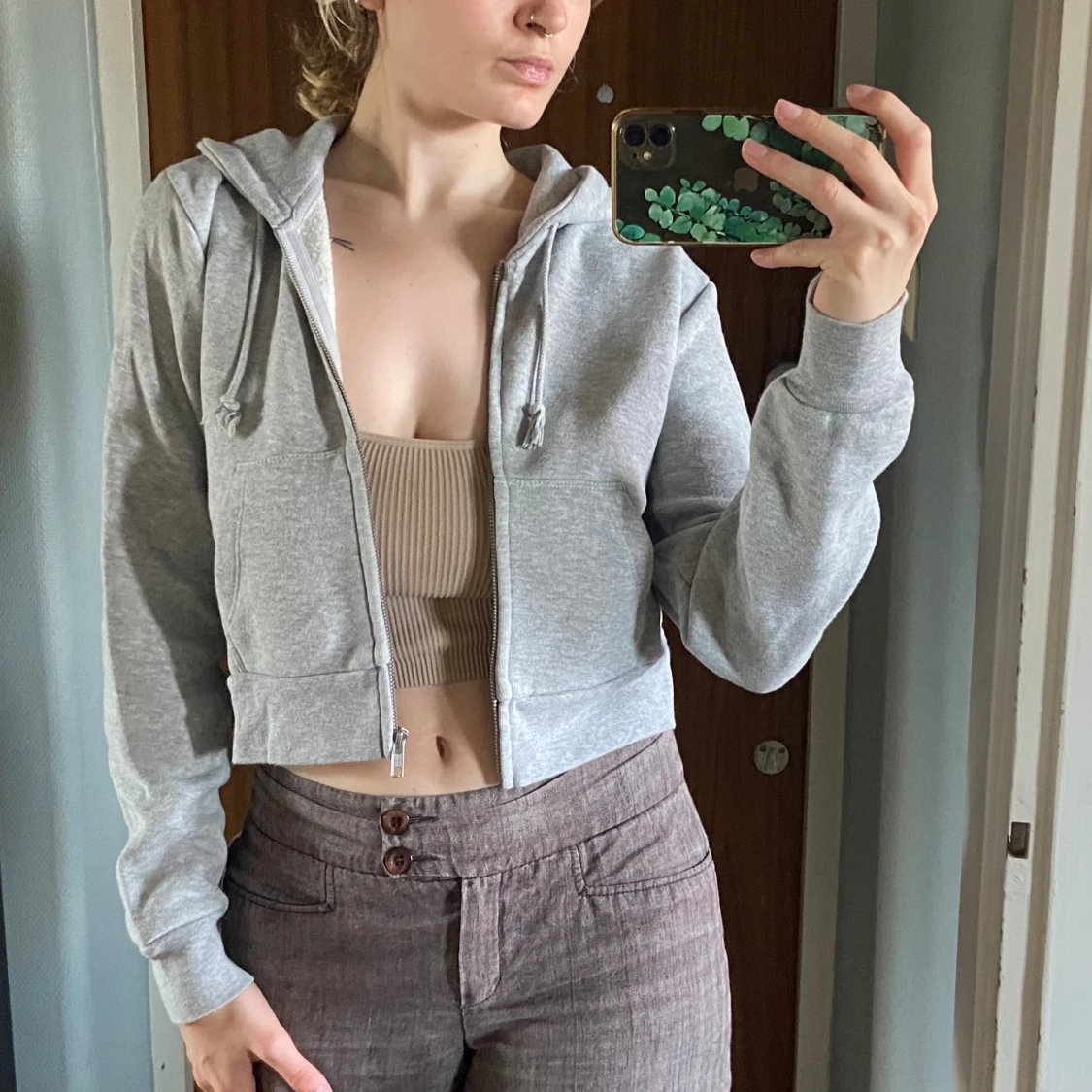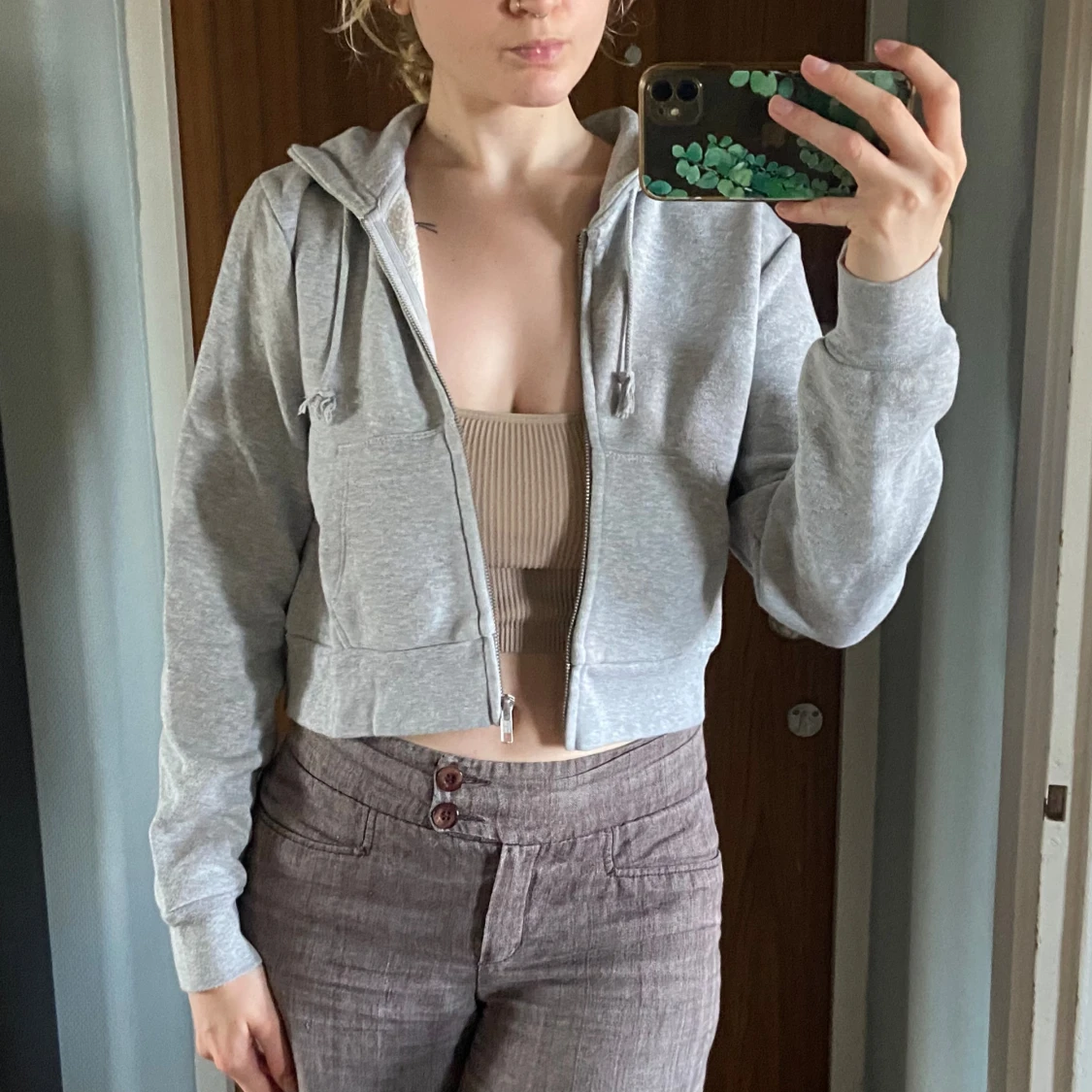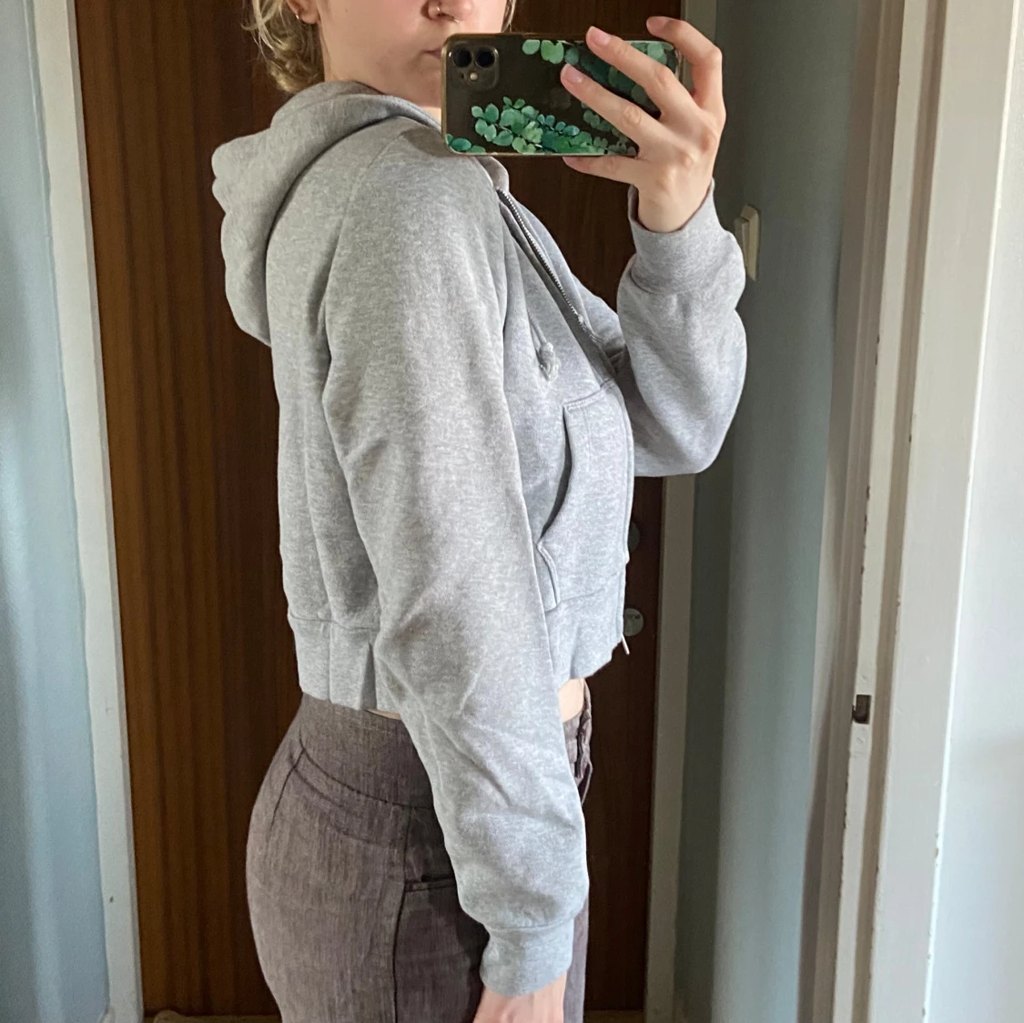 Superfin croppad zip up hoodie från brandy melville, inte min stil så använder inte. Använd fåtal gånger! Första bilden är lånad