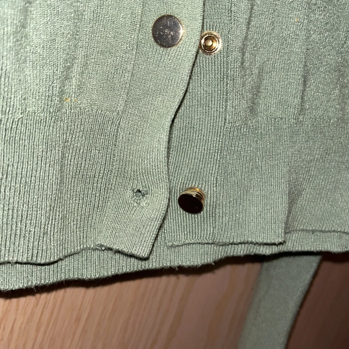 Så fin kofta med snygga guld knappar. Tyvär har en knapp gått sönder som man ser på bild 3 därav priset. Men inget som märks om man tar knappen igenom.