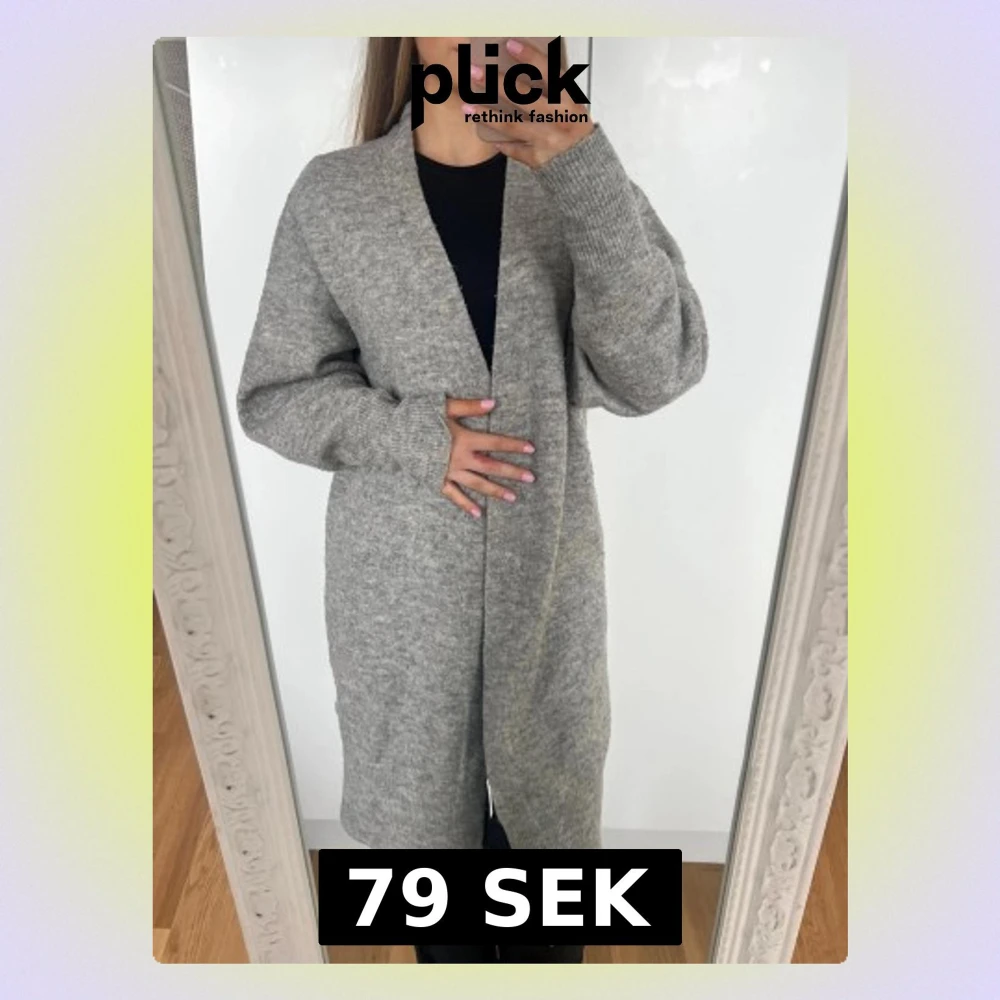 Lång, öppen grå kofta med beiga inslag i mjuk stickad kvalitet. Koftan har långa ärmar, ribbade muddar och en avslappnad passform. Supermysig 💕 Storlek XS från H&M. Lite nopprig men har mer att ge.