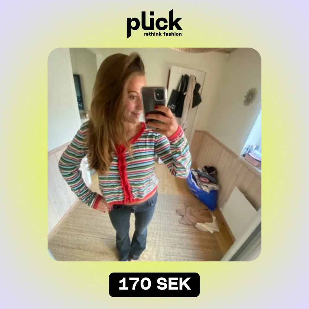 Säljer min superfina randiga kofta som tyvärr inte kommer till användning längre💕 Det är storlek L men det sitter snyggt på mig som har storlek S/M💕