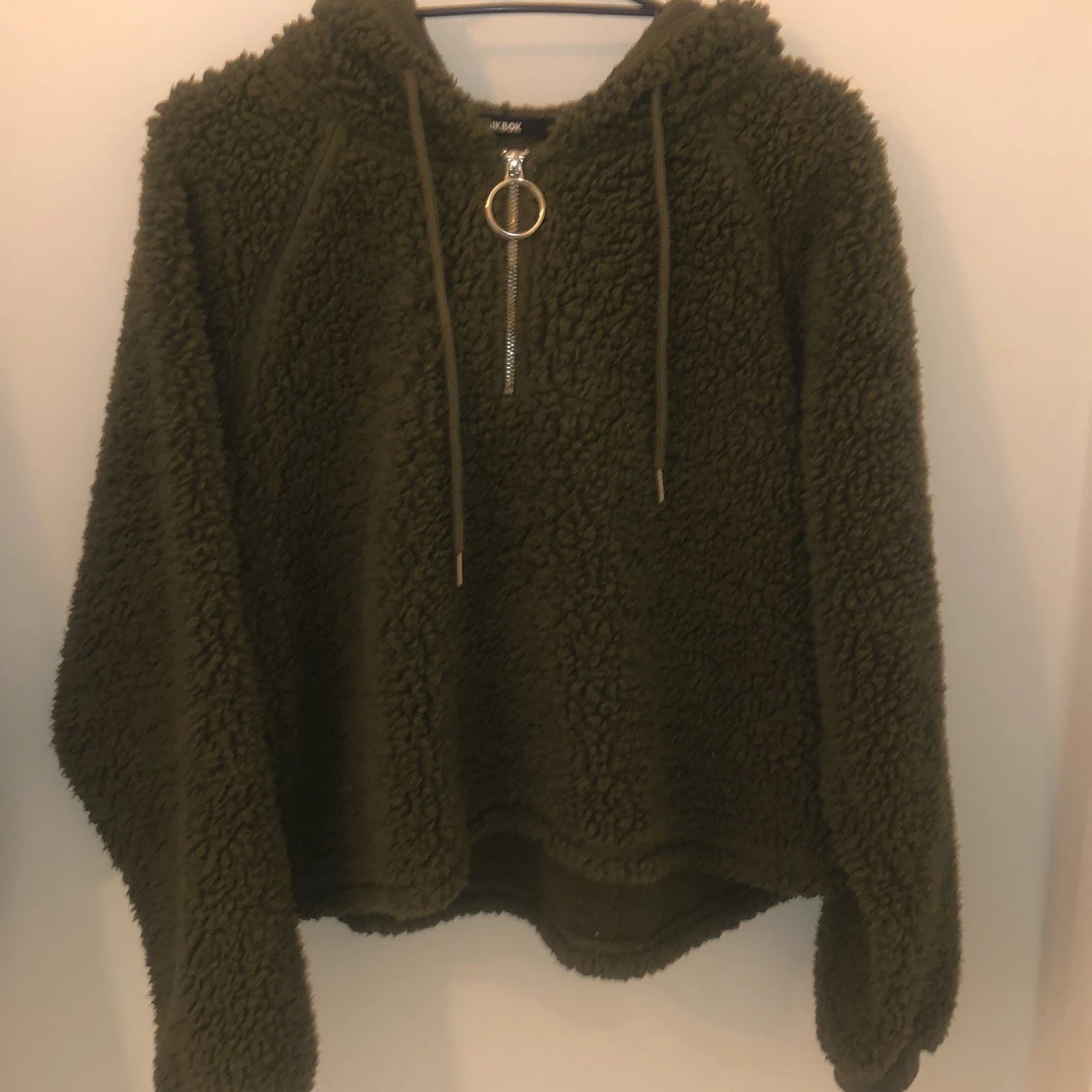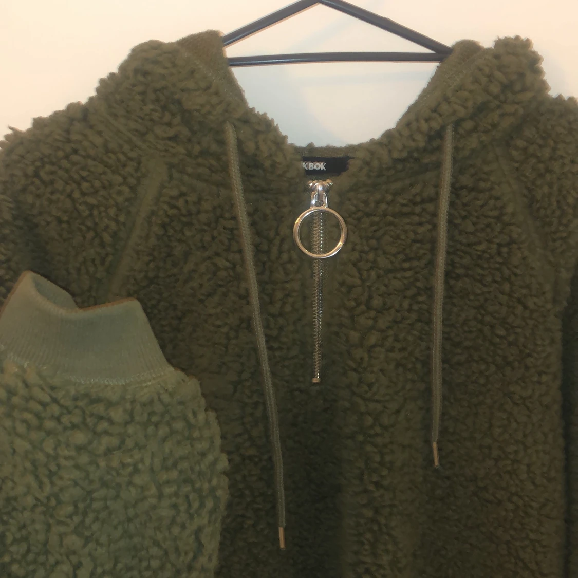 Denna mörkgröna kofta är från BIK BOK och är i storlek M. Den är använd 1-3 gånger och köpt för 1 år sedan. Den har både hals dragkedja och snöre i luvan.