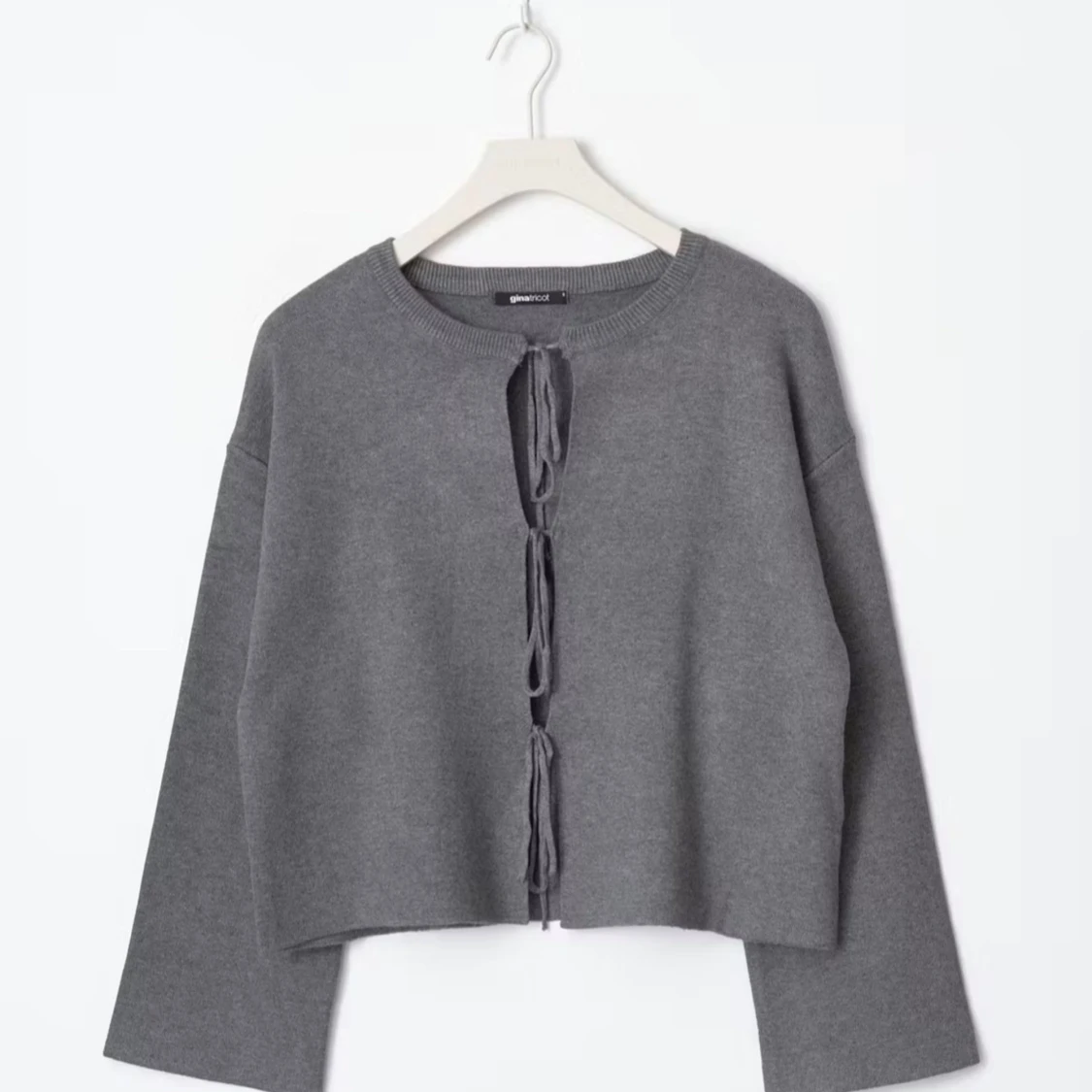 Grå kofta från Gina Tricot i storlek S men knytning framtill. Använt fåtal gånger, inga täcken på slitage