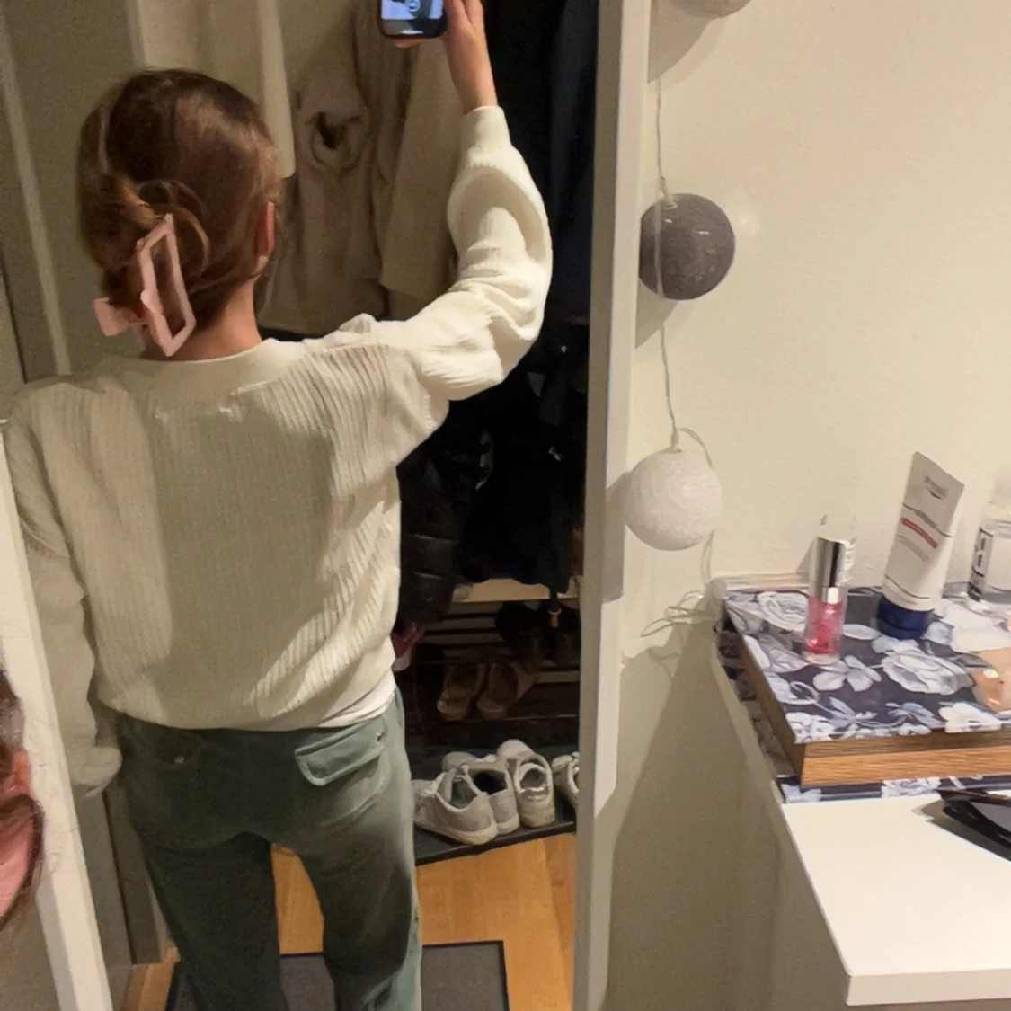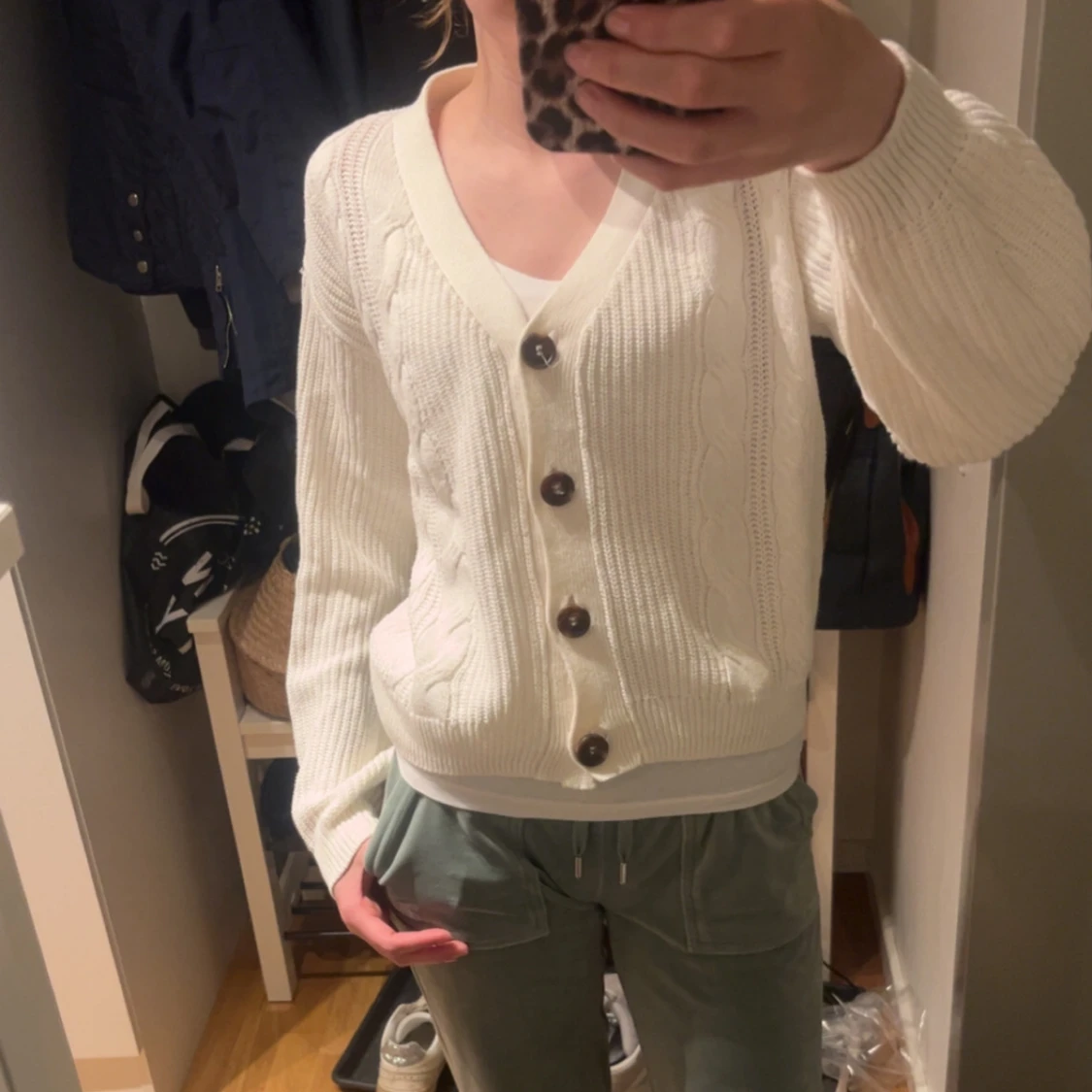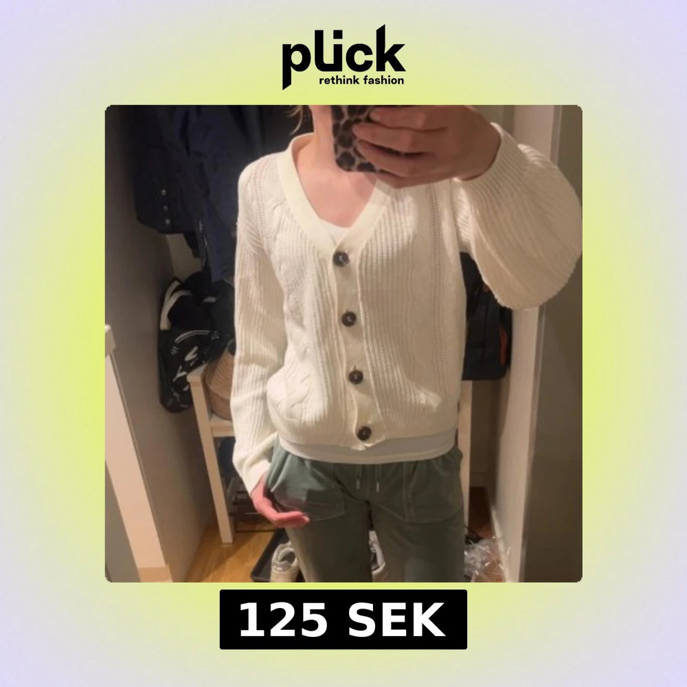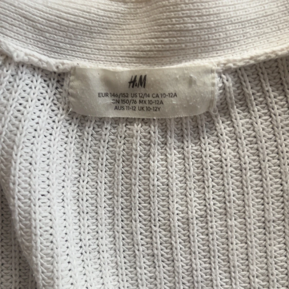 Vit stickad kofta från H&M. Den är naturlig vit ungefär. Säljer då den inte kommer till användning längre! Pris kan diskuteras!!