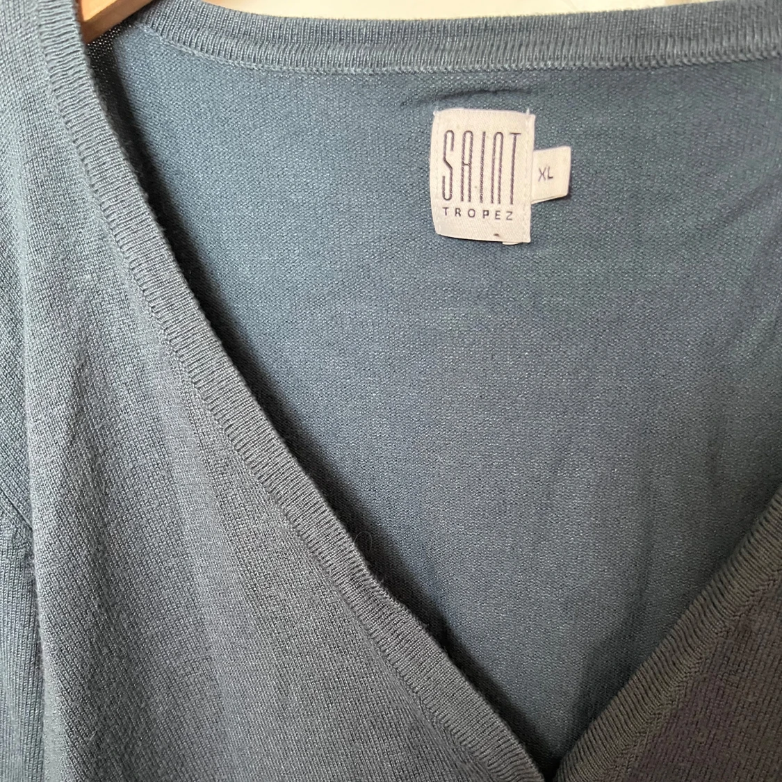 Säljer en grå/blå kofta från Saint Tropez. Den är i storlek xl men passar bra för mig som har storlek s och xs!💓 Lägg gärna prisförslag!