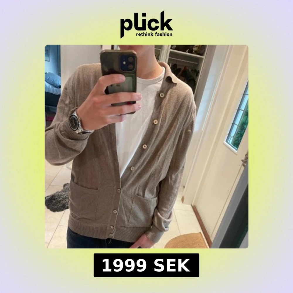 Säljer en klassisk beige kofta från Stenströms med knappar framtill och två fickor. Koftan har en mjuk känsla, ribbade muddar och krage. Perfekt att slänga över en t-shirt för en chill och stilren look.