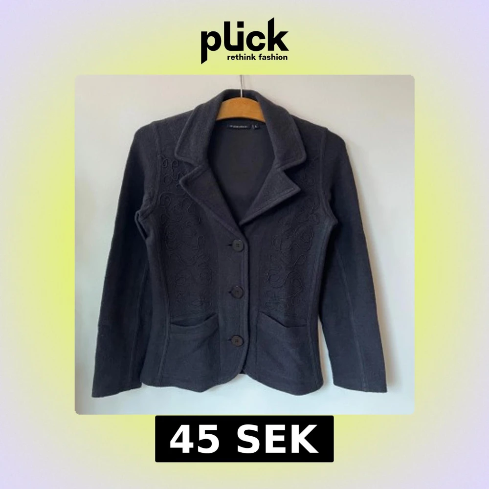 Mörkgrå kofta från Twilfit. Aldrig använd av mig (fick den av en släkting) och är som ny. Tyget är mjukt mot huden och känns varmt och hållbart. Framsidan har ett fint, diskret broderat mönster i samma färg som plagget, och stora knappar att knäppa med. Kan både has öppen och stängd, och sitter snyggt figurnära! Skulle passa toppen med en vit t-shirt under eller liknande.