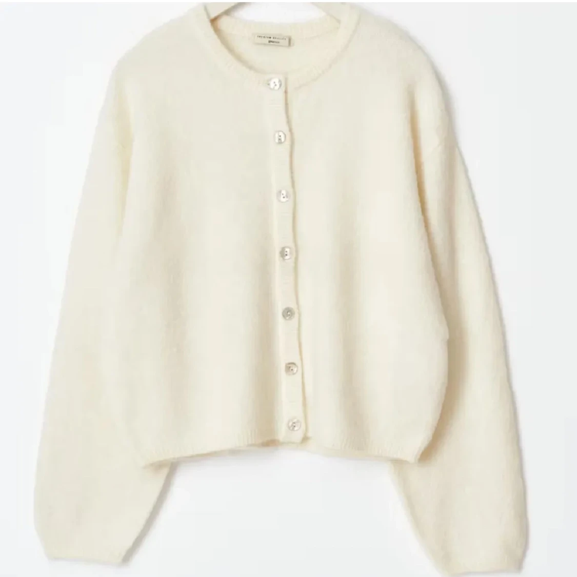 Supermjuk och fluffig vit kofta med rund hals och knappar framtill 💕💕