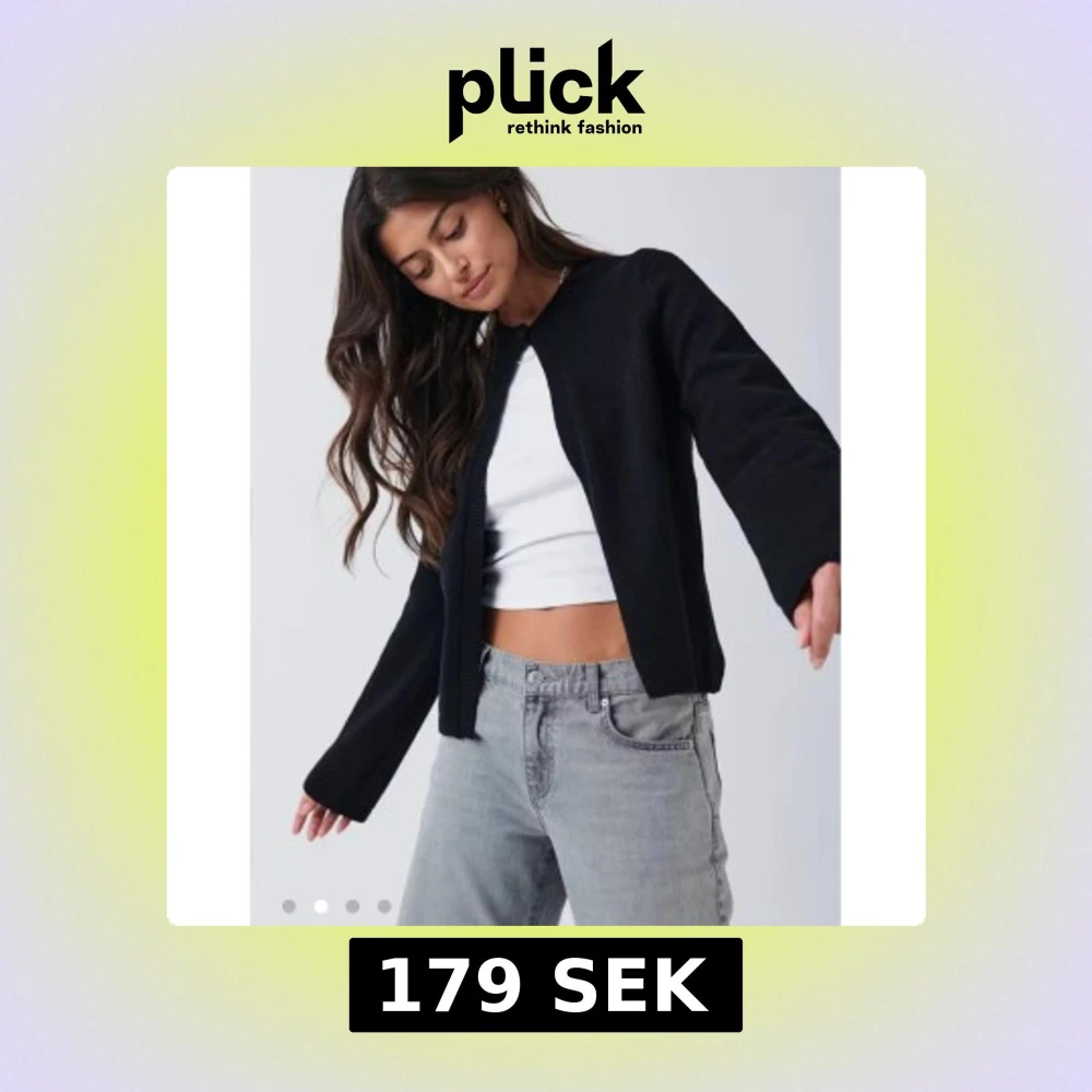 Svart stickad kofta från gina tricot i storlek S! Skönt material och en endast en knapp. Använd ett antal gånger med har inga skador, kan dock ha blivit pyttelite utstretchad. OBS katt i hemmet! Köpt för 359kr💗