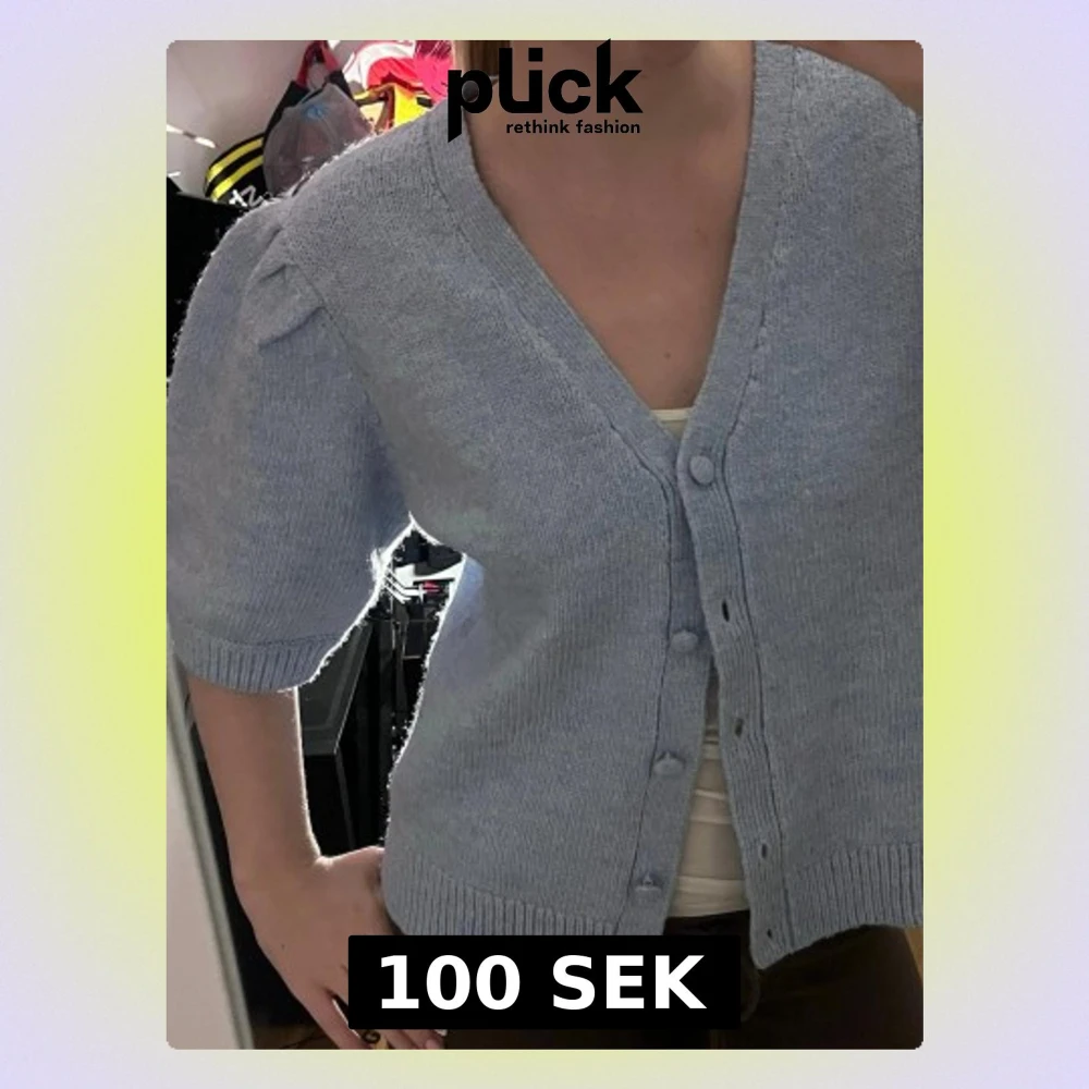 Söt ljusblå stickad kofta. Helt oanvänd. Strl XL men passar perfekt för mig som vanligtvis har S.
