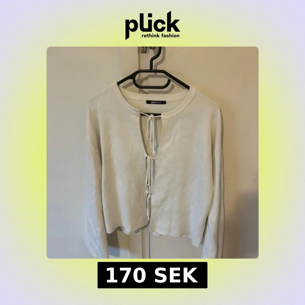 Superfin vit kofta från Gina Tricot med lång ärm och trendig snörning framtill. Mjuk och stickad känsla, perfekt till lager-på-lager. Rund halsringning och croppad passform för en modern look. OBS köp helst inte via Bring!