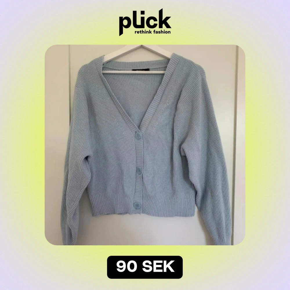 Jag säljer en ljusblå stickad kofta i storlek L, den har använts ett fåtal gånger och är i bra skick. Köpte den för cirka 400kr men säljer för 90kr!