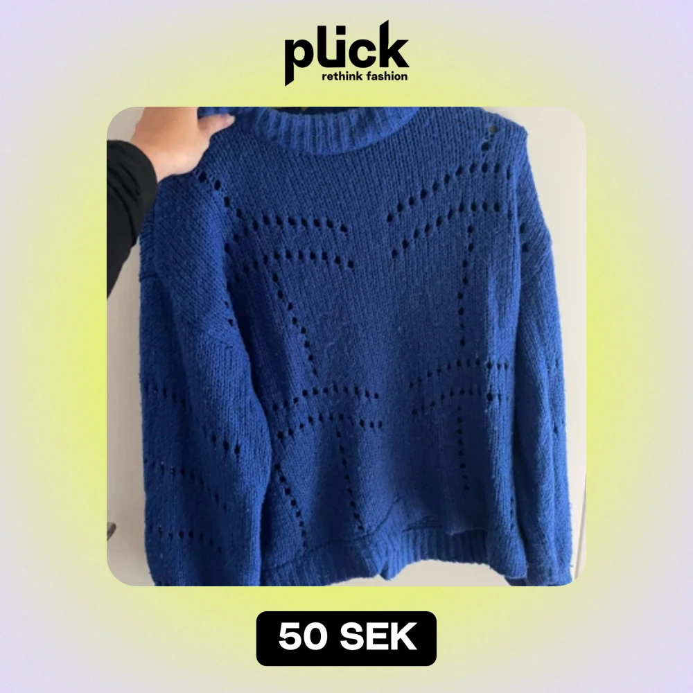Säljer en superfin blå stickad tröja från Gina Tricot. Den har ett snyggt hålmönster som ger en cool look. Perfekt för höst och vinter, och den är riktigt mysig att ha på sig. Tröjan har långa ärmar och en ribbad krage.