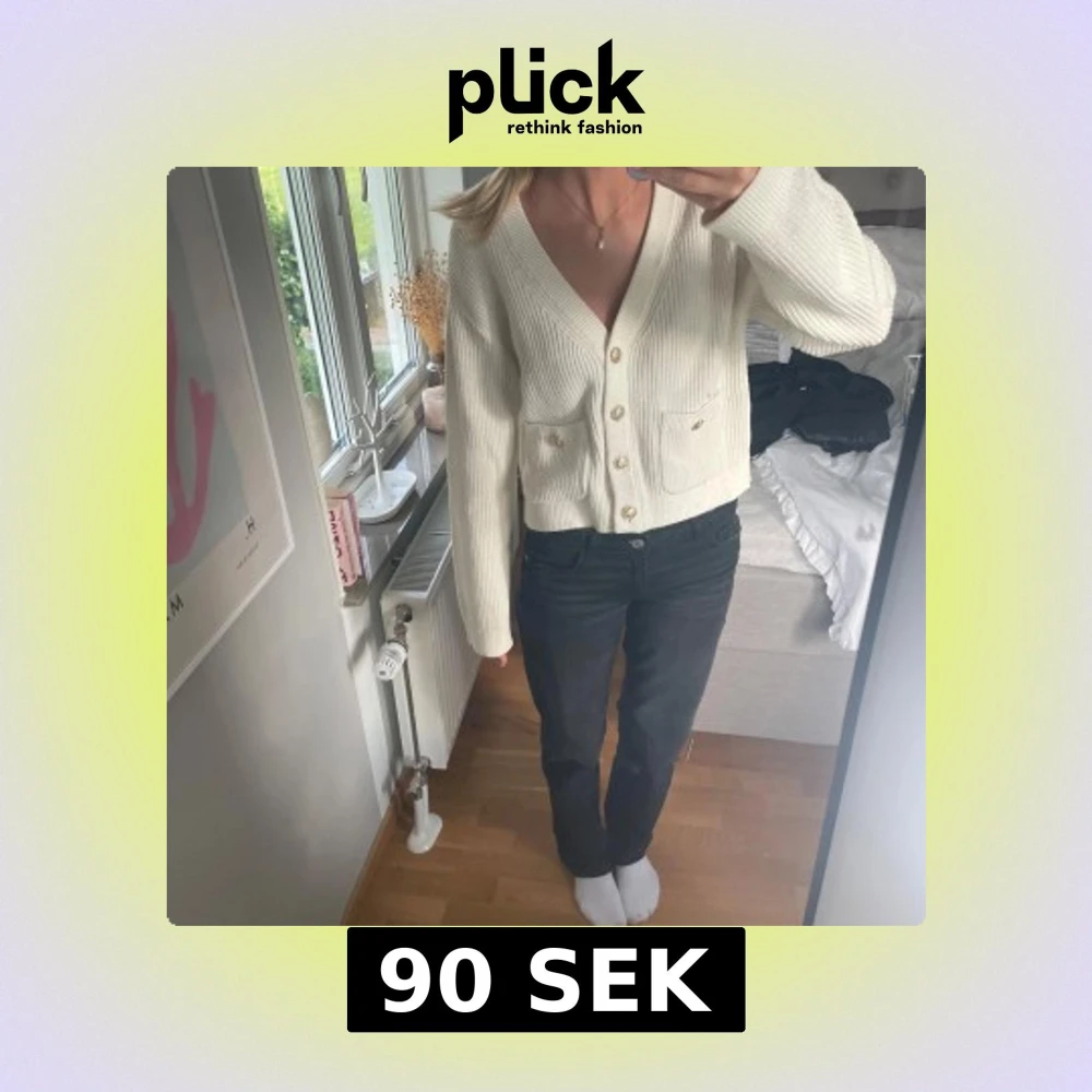 Säljer en vit kofta med snygga guldfärgade knappar!