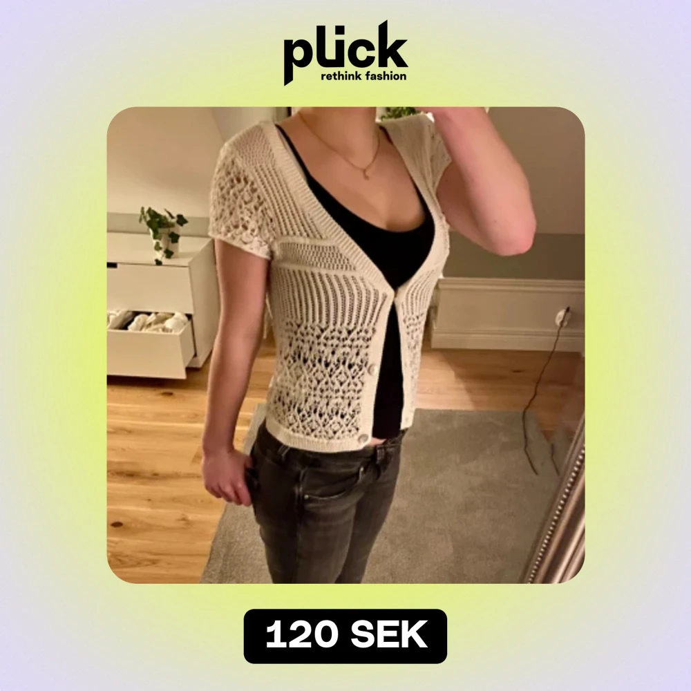 Säljer denna vita kortärmade kofta från hm💞 Den är köpt på sellpy och visar få tecken på användning och är i bra skick, så fin💗