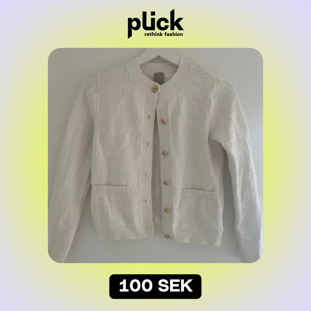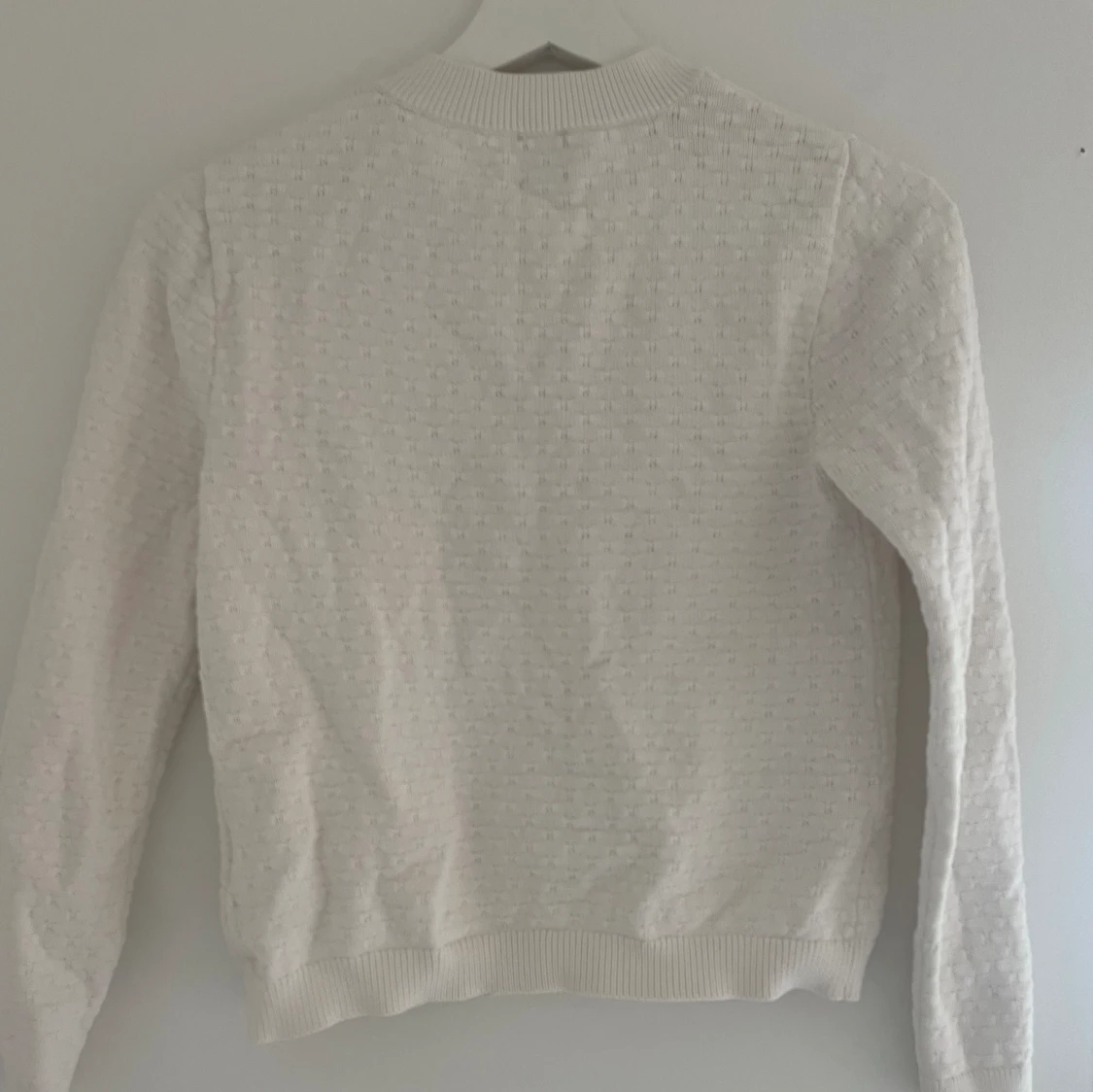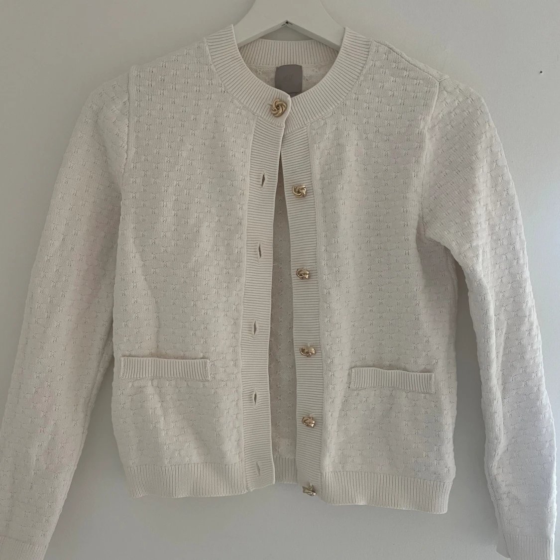En gullig vit kofta med guld knappar i fint skick!!đsĂ€ljer dĂ„ den inte kommer till anvĂ€ndning!! Koftan Ă€r nĂ„got liten i storlekđđ