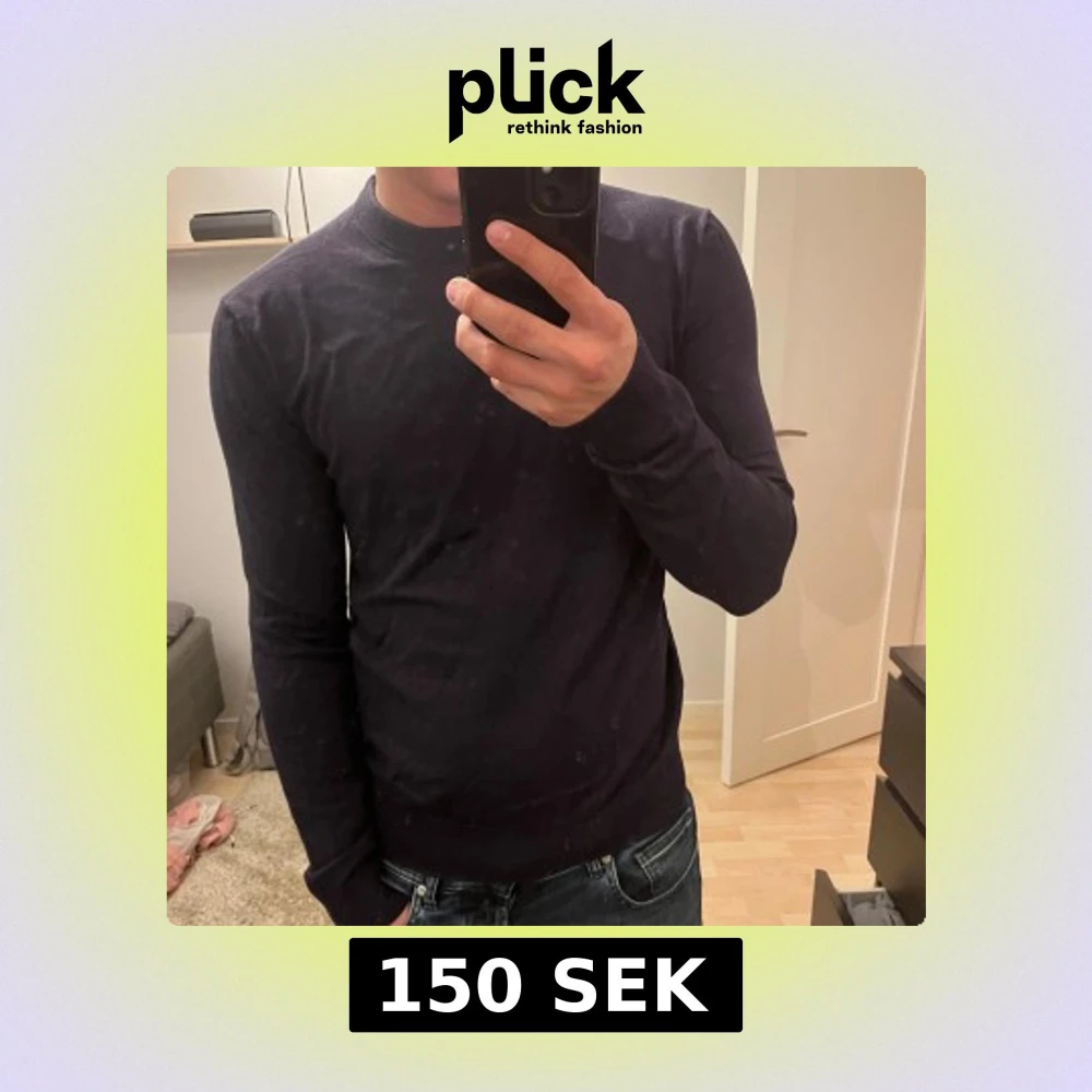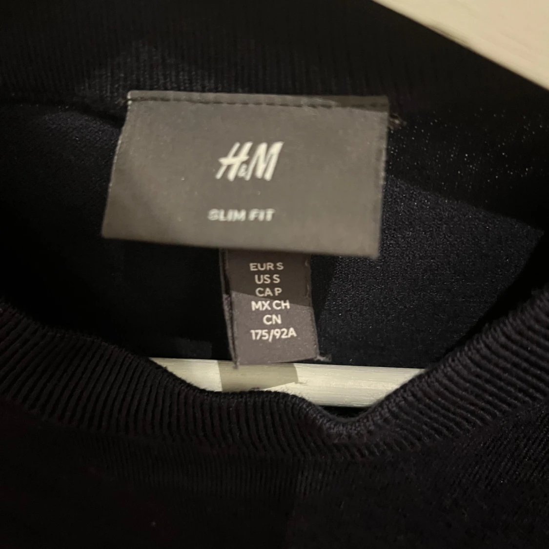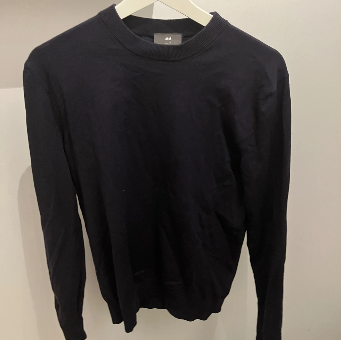 Säljer en mörkblå långärmad tröja från H&M i slim fit-modell. Säljer på grund av att den är för liten.