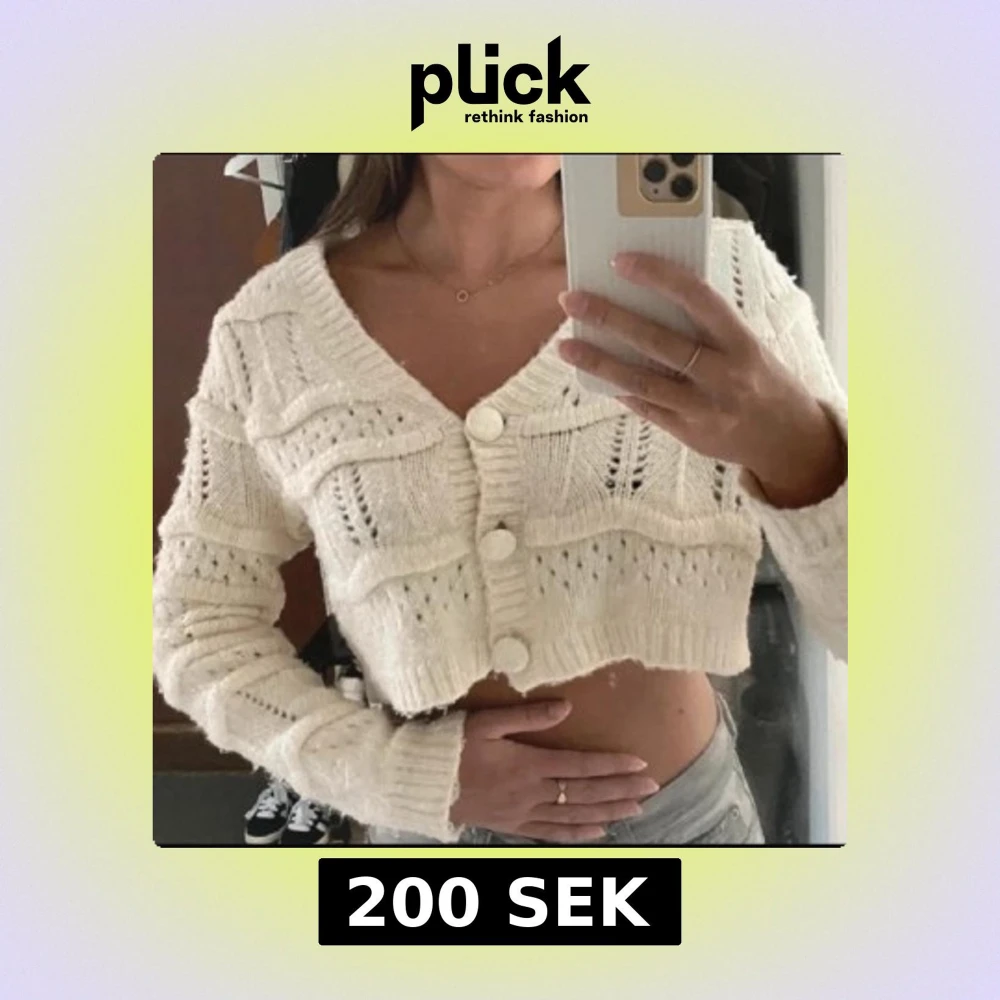 Superfin stickad croppad beige kofta med stora knappar! Säljer eftersom den inte kommer till användning💕inte mina bilder!!!!