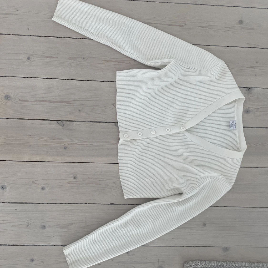 Säljer denna ribbstickade vita koftan från Lindex i storlek 134-140 men passar även ca. Den som ny 🤍 vid intresse/frågor skriv privat