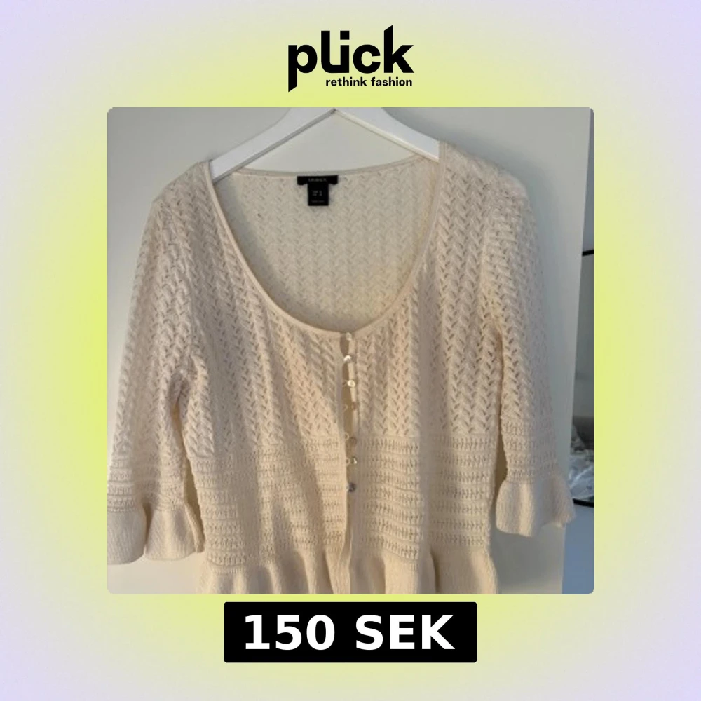 Supersöt vit kofta från Lindex med trekvartsärm och volangdetalj vid ärmslut. Storlek M men sitter perfekt på mig som vanligtvis bär xs-s ❤️ koftan funkar perfekt som bara en topp alternativt en kofta över ett annat plagg !